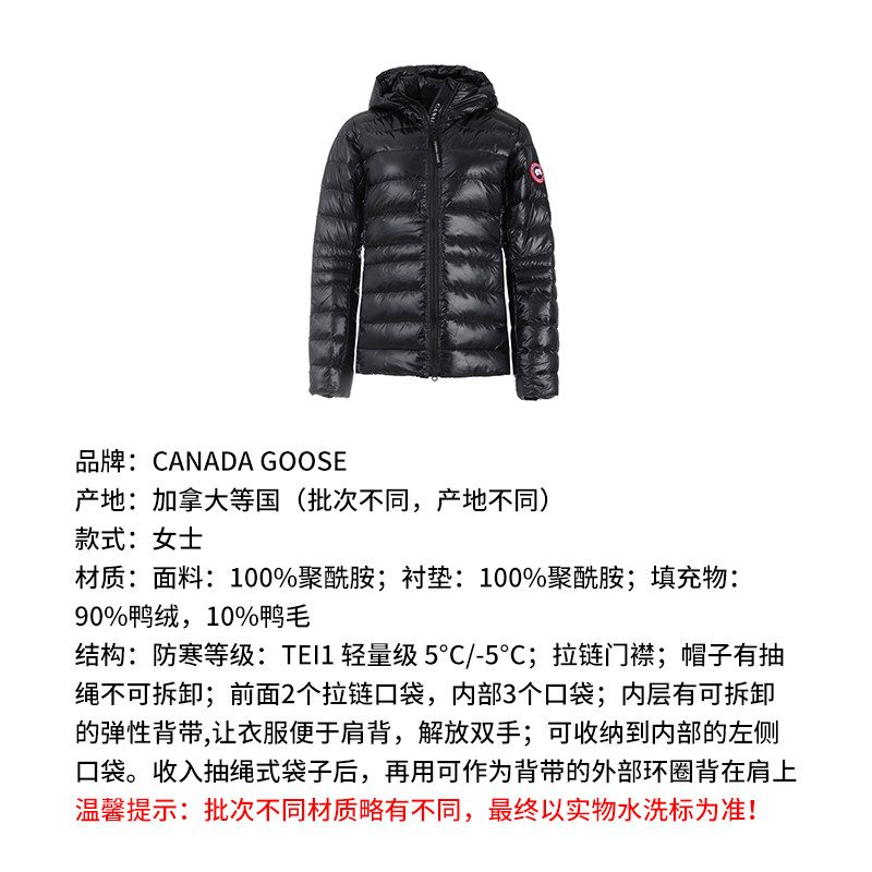 鸭绒连帽羽绒服2242W 女士薄款 CANADA GOOSE加拿大鹅