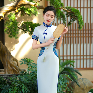 斜襟改良旗袍禅意国风白色连衣裙夏季 新中式 可扎染母女款 2025新款