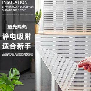 条纹磨砂玻璃窗贴纸防撞腰线半透明推拉门办公室阳台遮光窗户贴膜