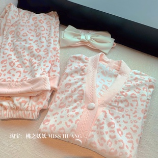 纯欲风冬季 2025新款 加厚海岛绒家居服薄绒 睡衣女秋冬款 粉粉豹纹