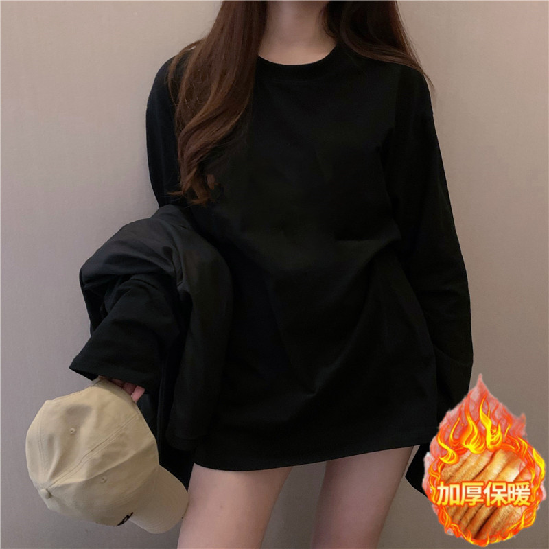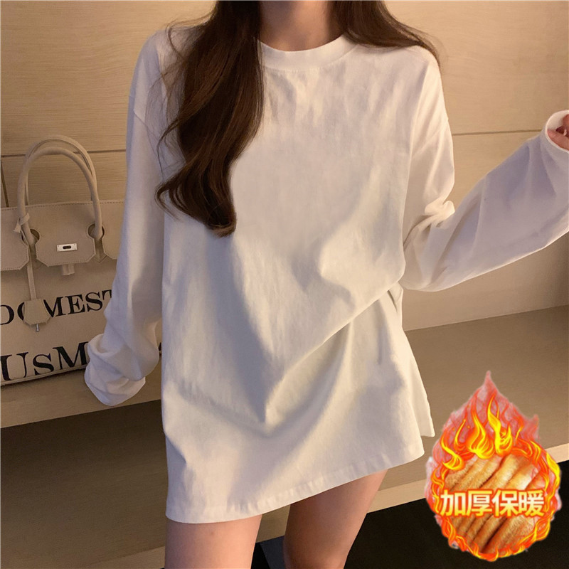宽松卫衣叠穿内搭纯色打底衫 新款 加绒上衣 t恤女春秋冬季 白色长袖