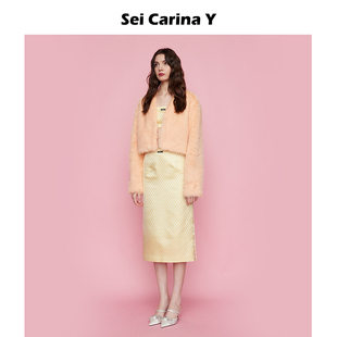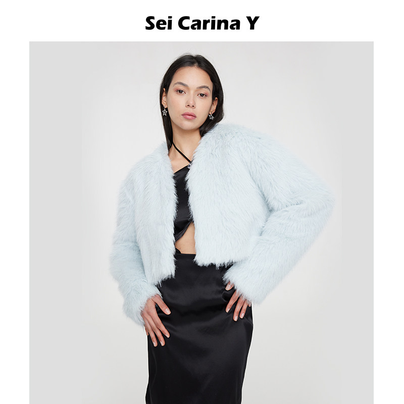 Carina 外套新款 Y黄奕同款 开衫 女甜美毛毛上衣 长毛绒短款 Sei