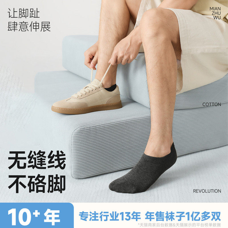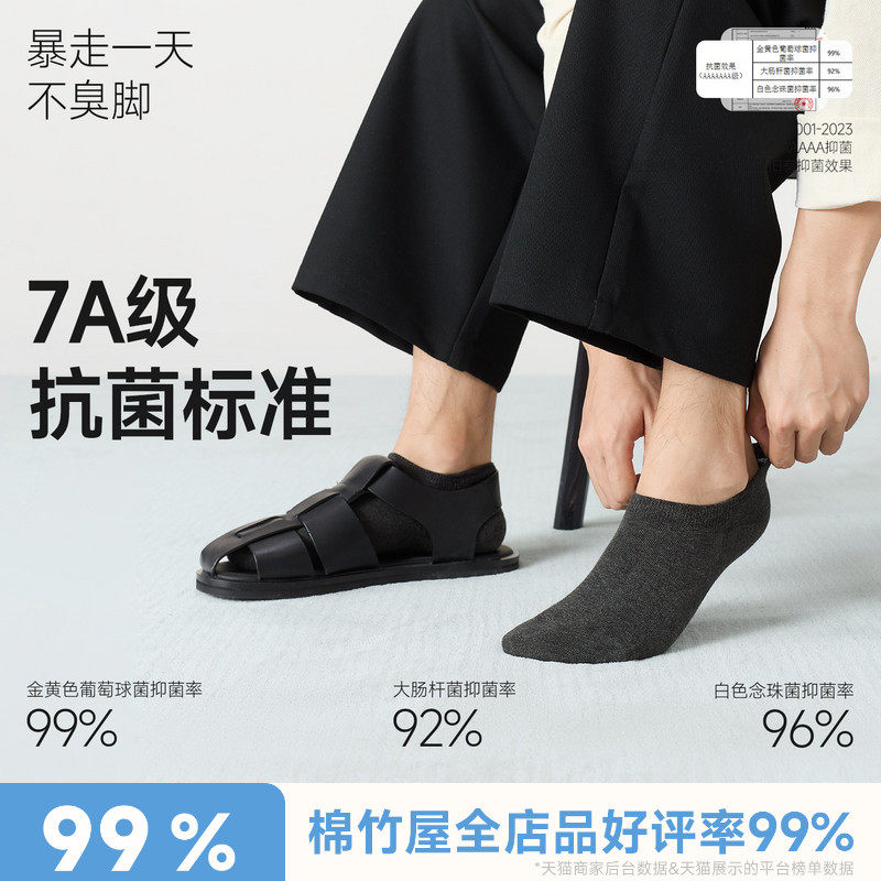 浅口短袜 隐形不掉跟纯棉防臭吸汗7A抗菌秋季 袜子男士 船袜春夏薄款