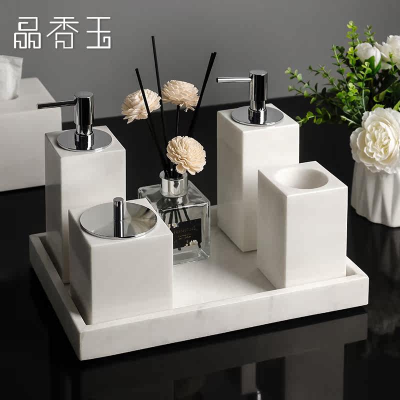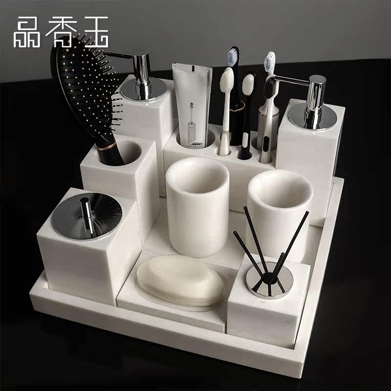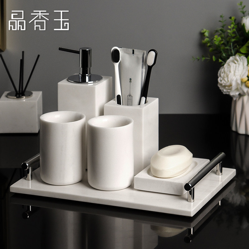瓶酒店 分装 轻奢大理石白卫浴洗漱套装 口杯牙刷架托盘抽纸巾盒欧式