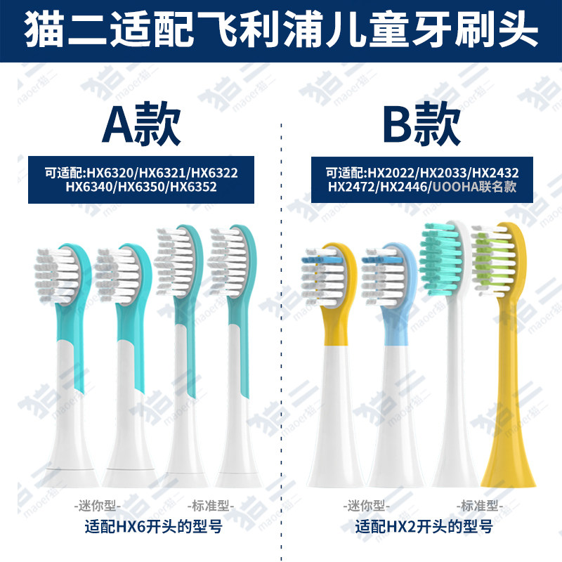 猫二适配飞利浦儿童电动牙刷头HX6050 6340替换2022通用2472 6042