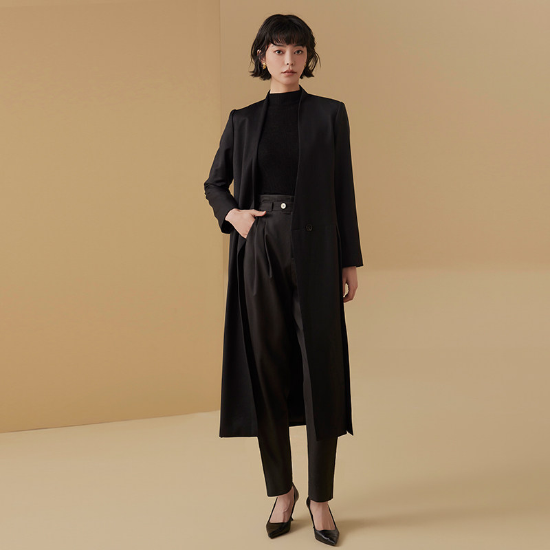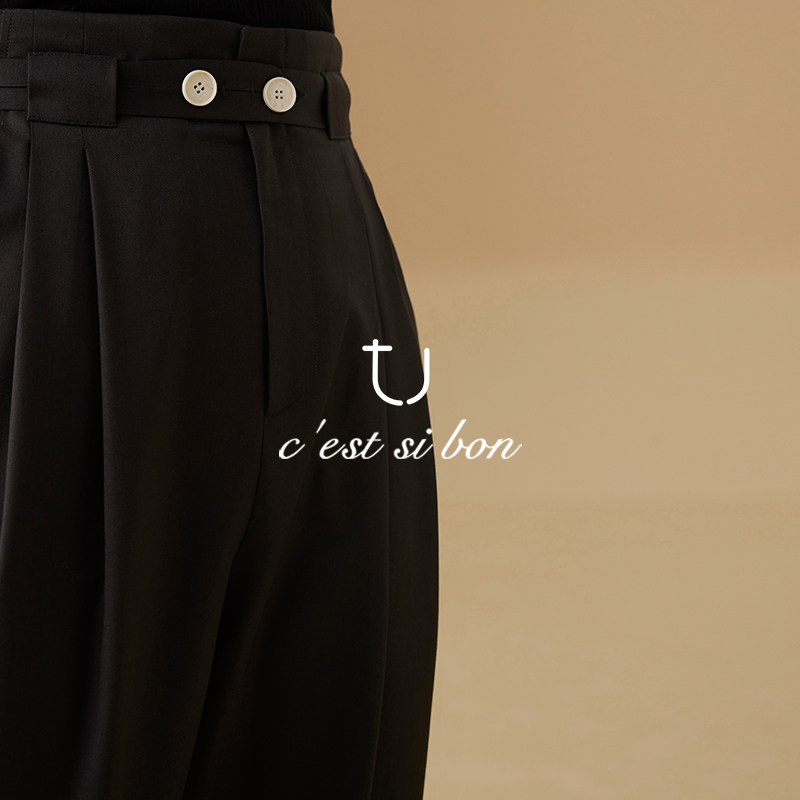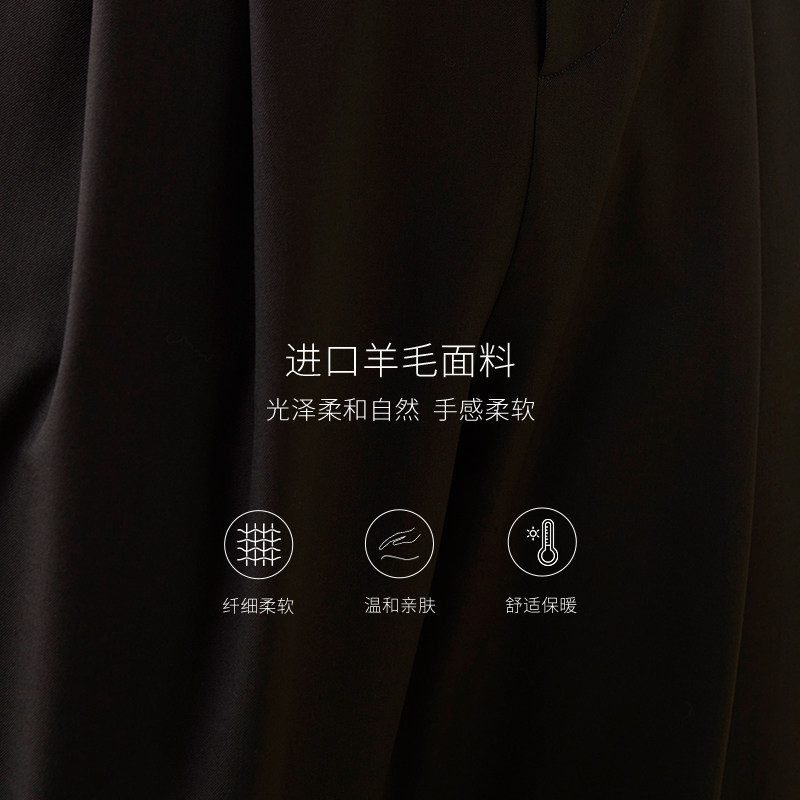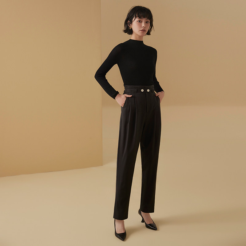 TU黑色羊毛烟管松紧高腰哈伦裤 显瘦通勤休闲百搭原创设计 女修身