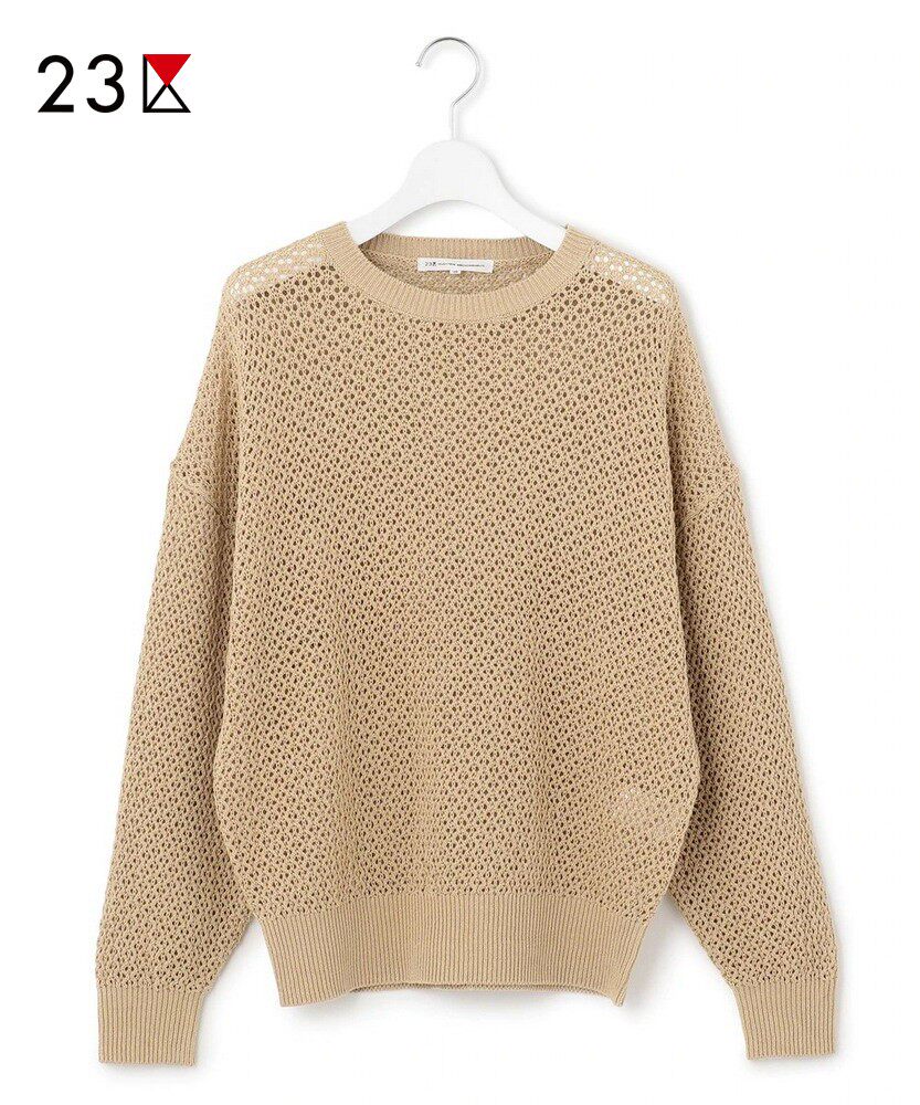 商场同款 镂空罩衫 通勤宽松棉亚麻混纺圆领套头针织衫 23区日系春季