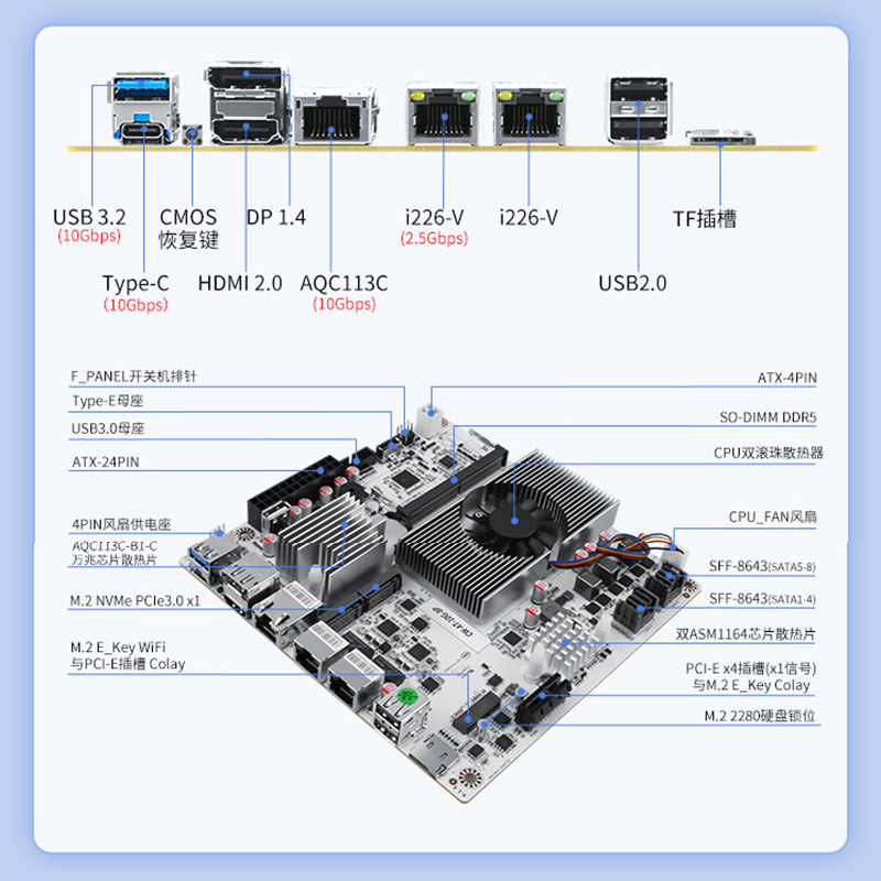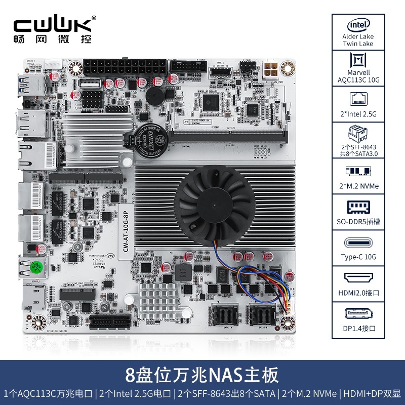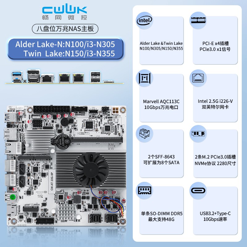 M.2 DDR5 NVMe 10G 8盘位万兆NAS主板 畅网N150 PCIE扩展 N355