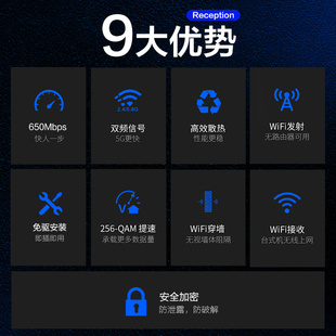 电脑WiFi接收器5G台式 WiFi6免驱动无线网卡USB台式 机上网迷你外置网络信号发射器笔记本家用随身 急速发货
