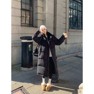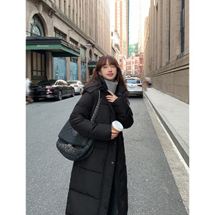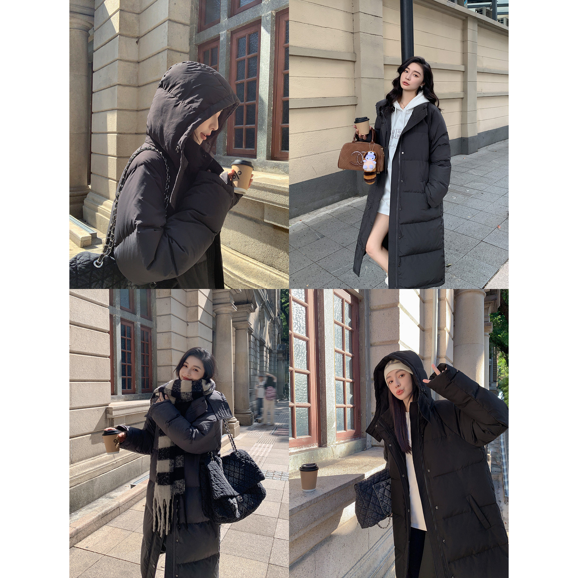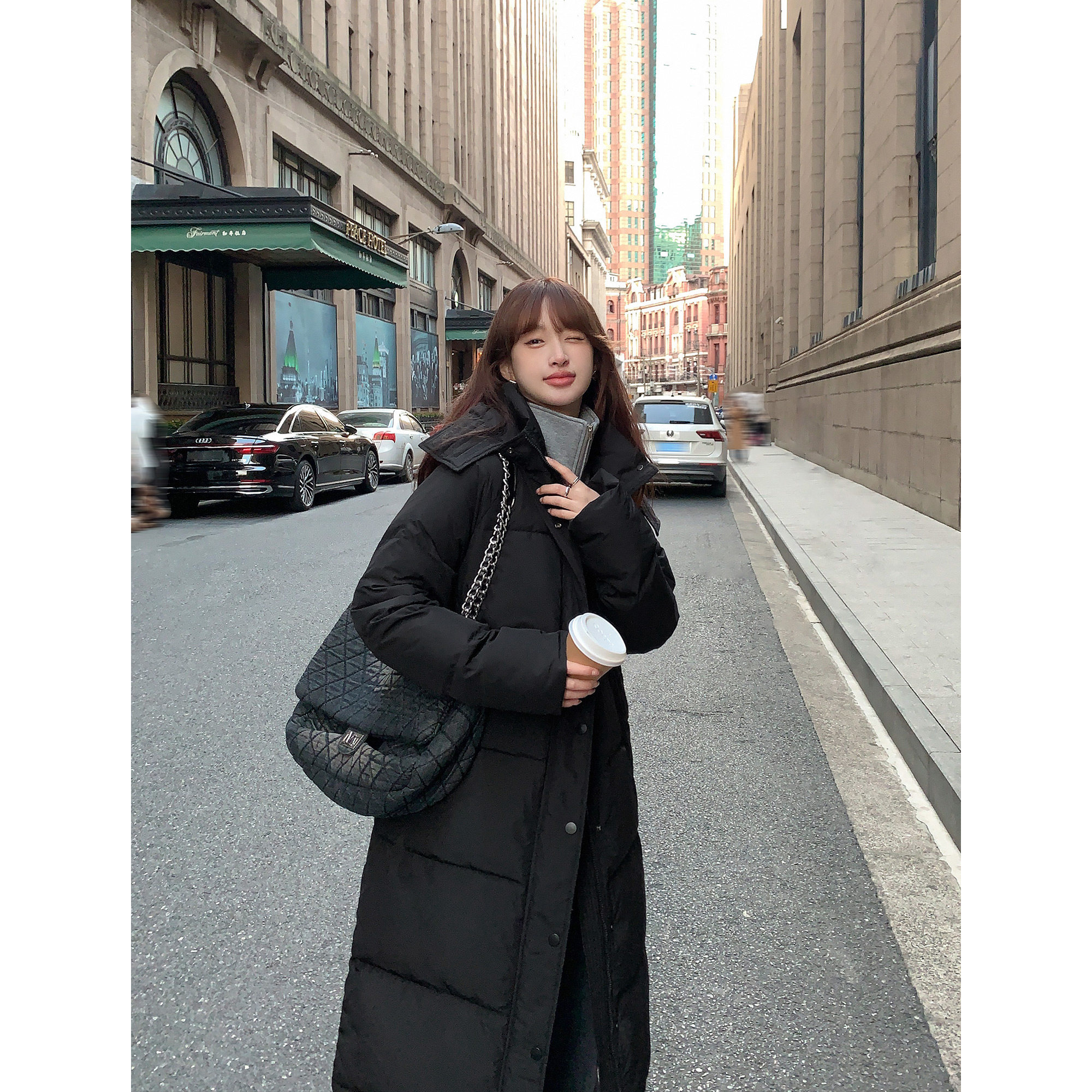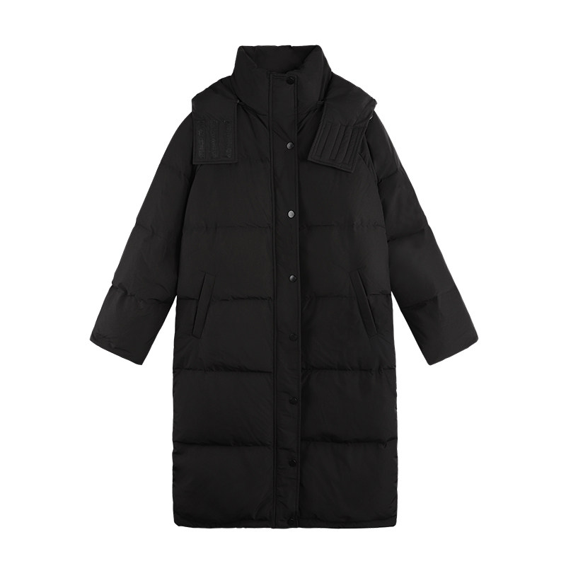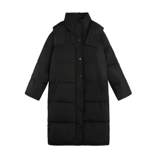韩版 MULVAN 羽绒服女冬季 黑色长款 保暖可拆卸帽外套 现货7折