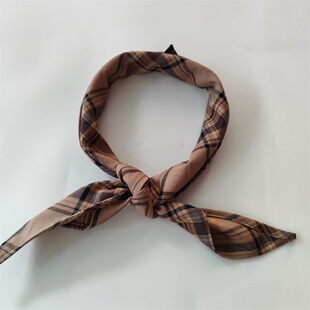 百搭春夏护颈棉头巾文艺女 饰领巾纯棉布格子英式 格纹三角巾男式 装
