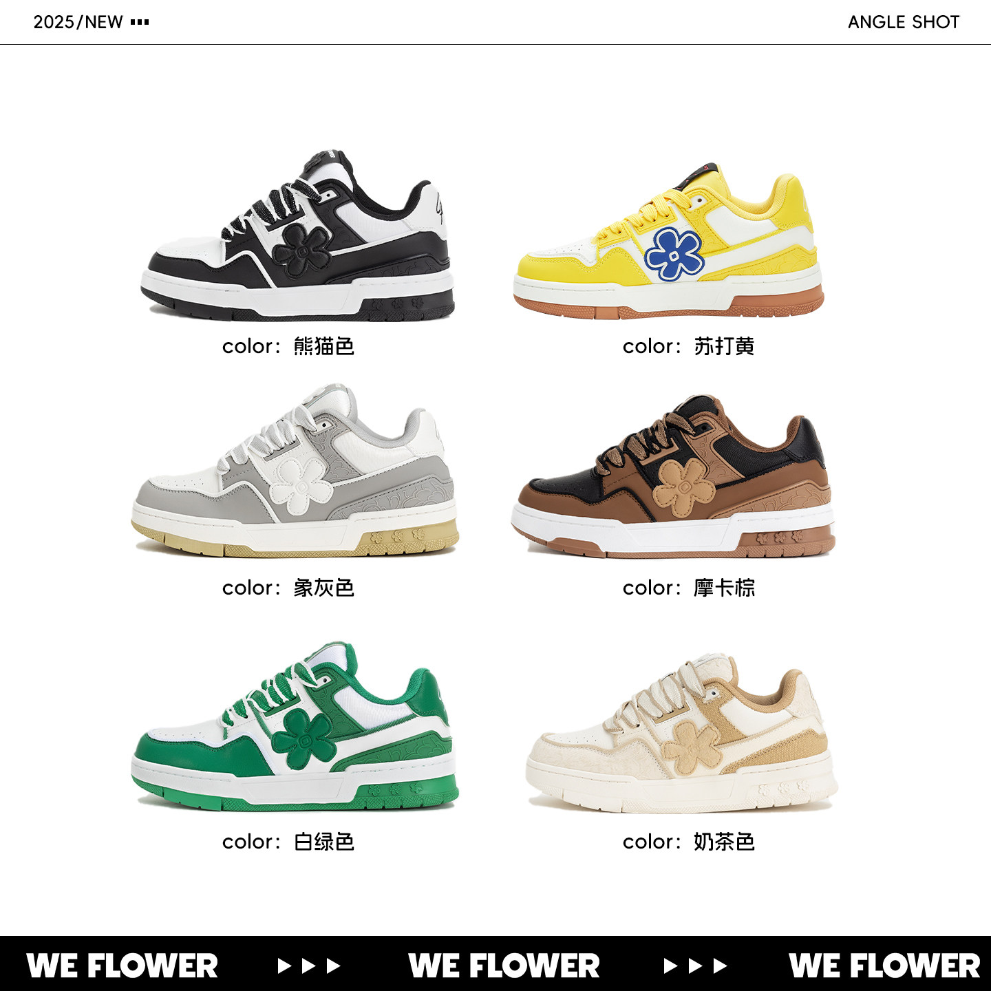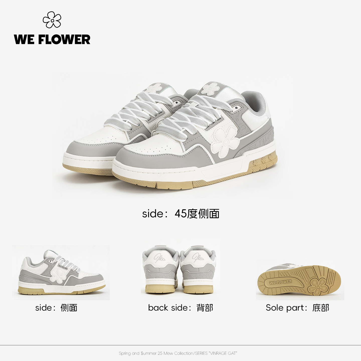 Flower小花鞋 防滑耐磨休闲运动鞋 明星同款 皮面厚底板鞋 冬季