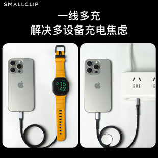 SMALLCLIP磁吸充电线手表无线充二合一100W快充数据线type 16promax手机iWatch笔记本 c一线两充适用苹果15
