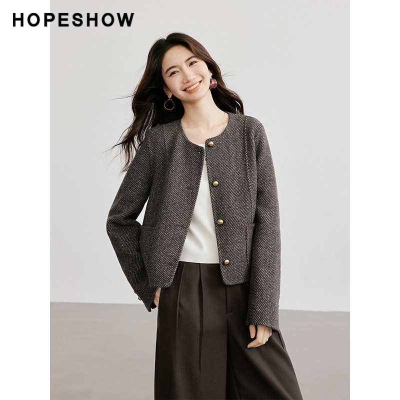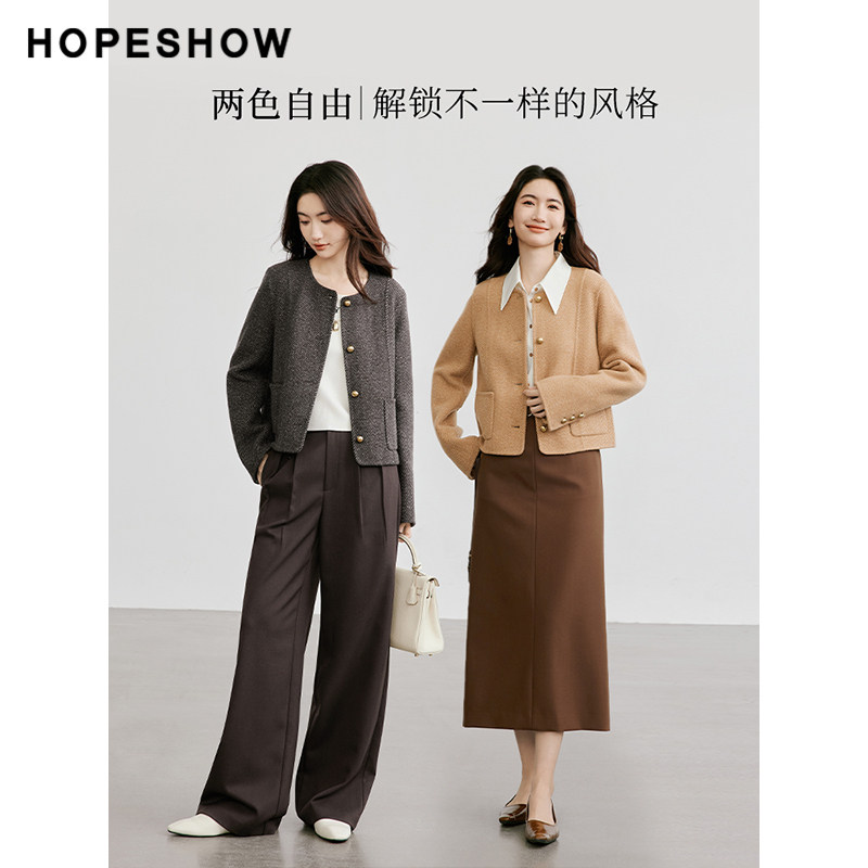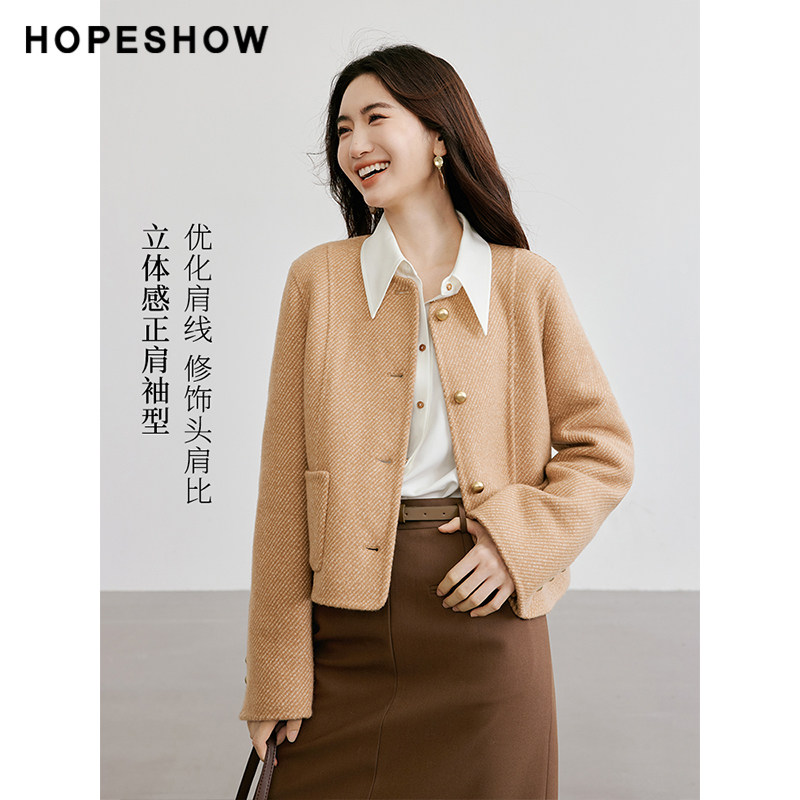 女装 新款 肌理感正肩单排扣圆领双面呢 冬季 红袖