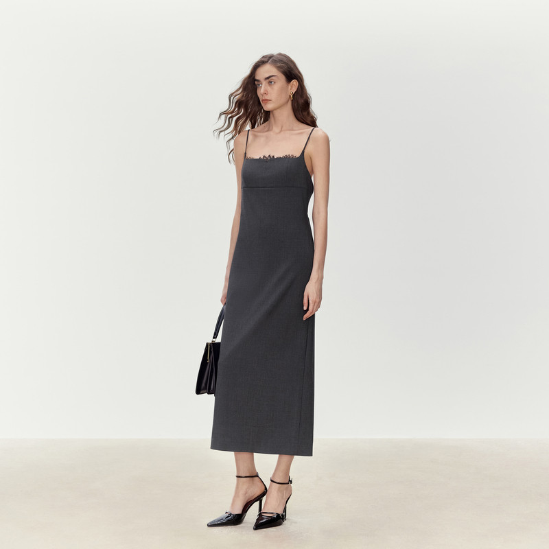 新款 吊带连衣裙女夏季 气质裙子 蕾丝花边拼接露背优雅法式 LYNEE