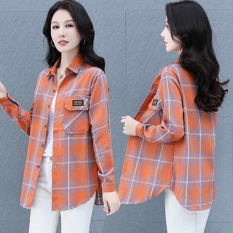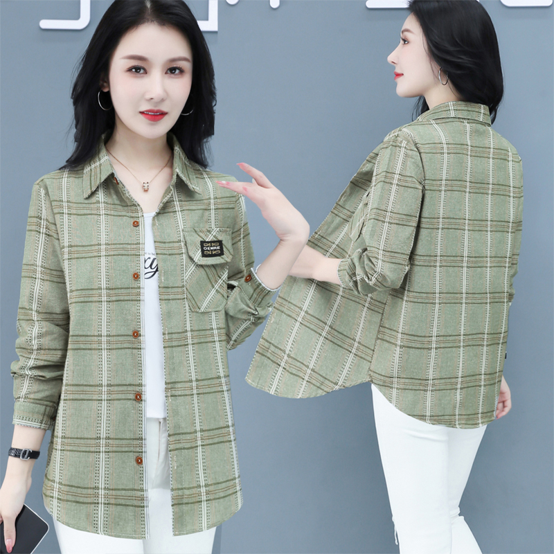 薄款 格子衬衣女中年夏装 外套 中老年春秋长袖 外搭上衣妈妈纯棉衬衫