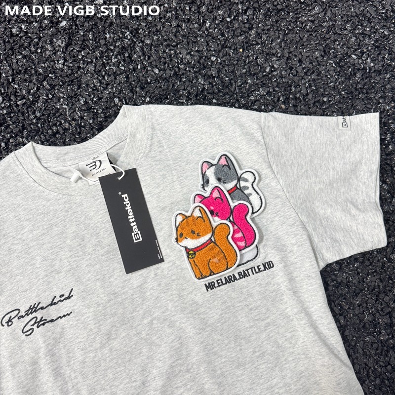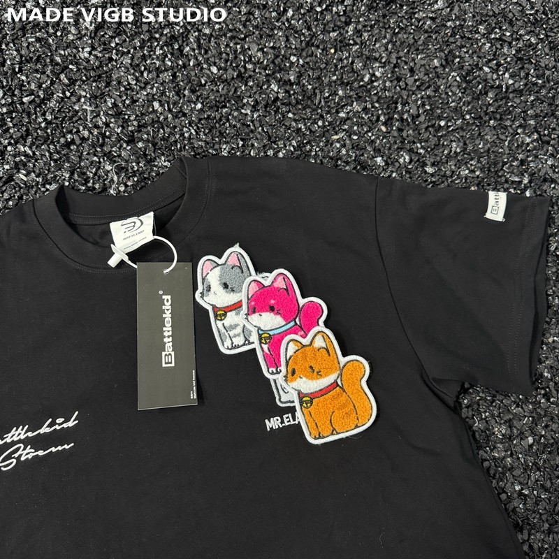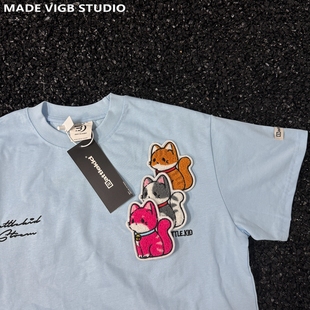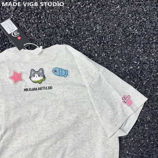 VIGB 原创国潮魔术贴猫咪可爱趣味多巴胺重磅T恤男女情侣纯棉短袖