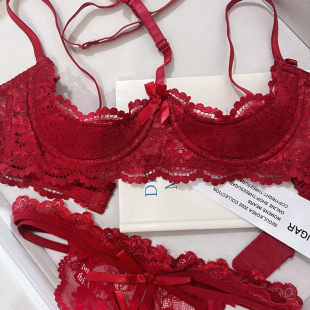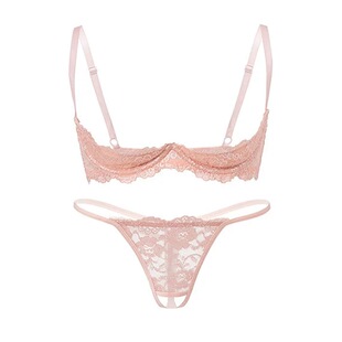 内衣四分之一罩杯免脱 三点式 性感蕾丝文胸套装 纯欲风镂空胸罩薄款