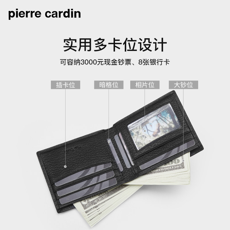 钱包短款 皮尔卡丹男士 头层羊皮商务皮夹子真皮钱票夹新款 羊皮