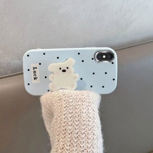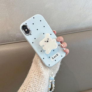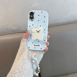 适用于苹果x手机壳xs不包镜头xsmax波点xr小狗iphonex带支架iphone8x可爱ipx10xmax蓝色防摔iponex软壳ix叉r