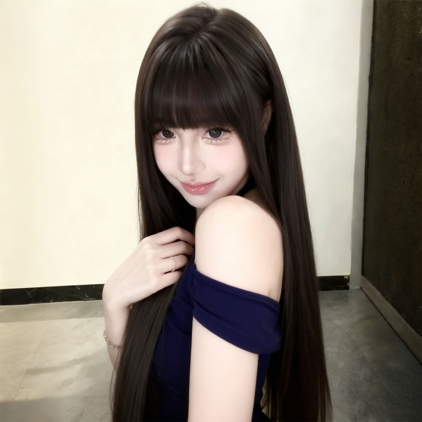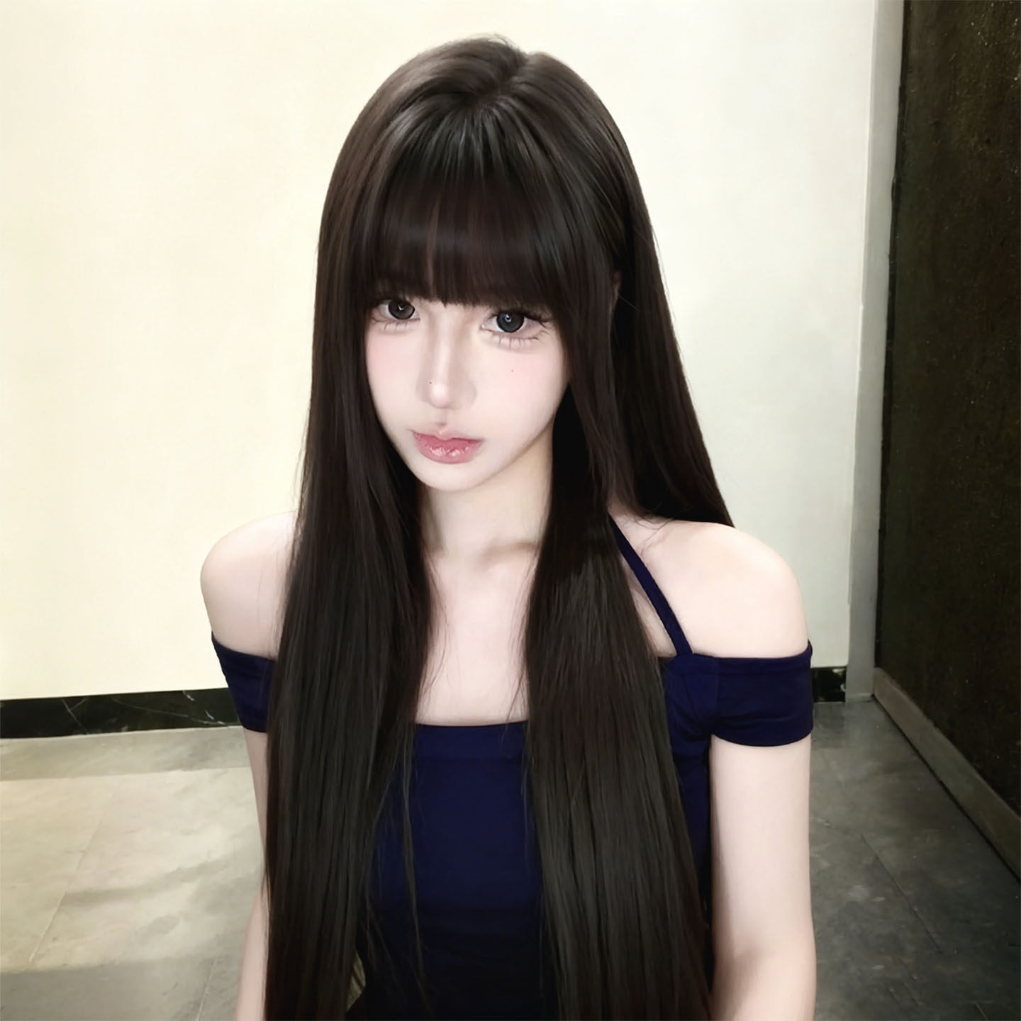 黑长直假发全头套女齐刘海蓬松自然日常黑色整顶富江漫画假发套