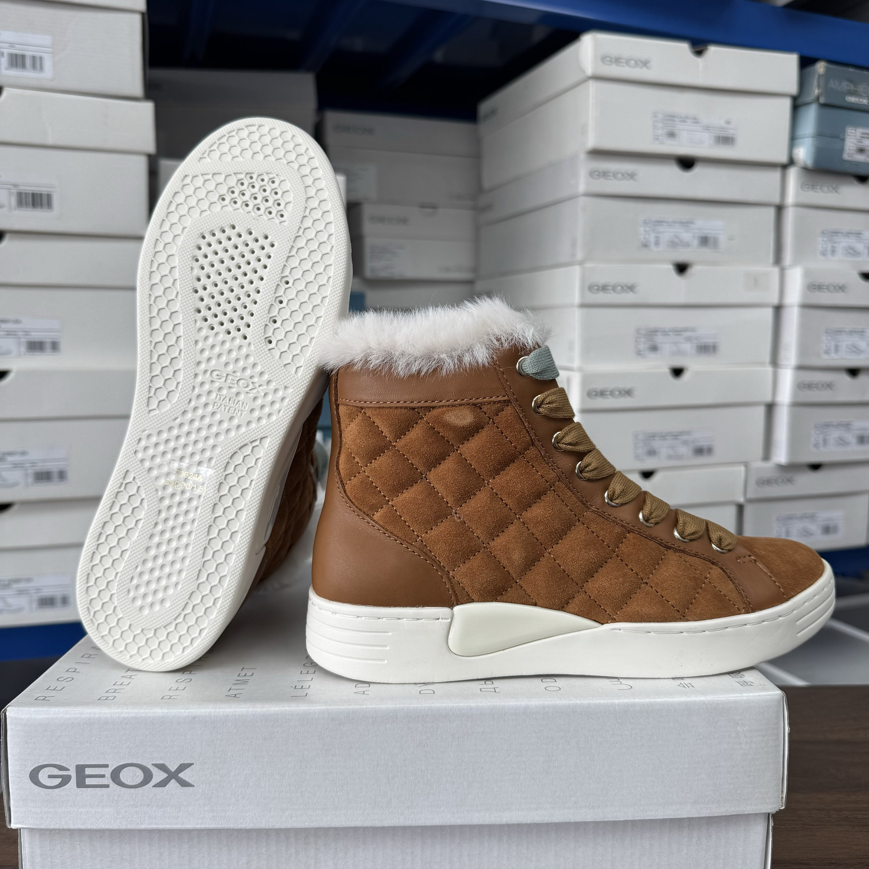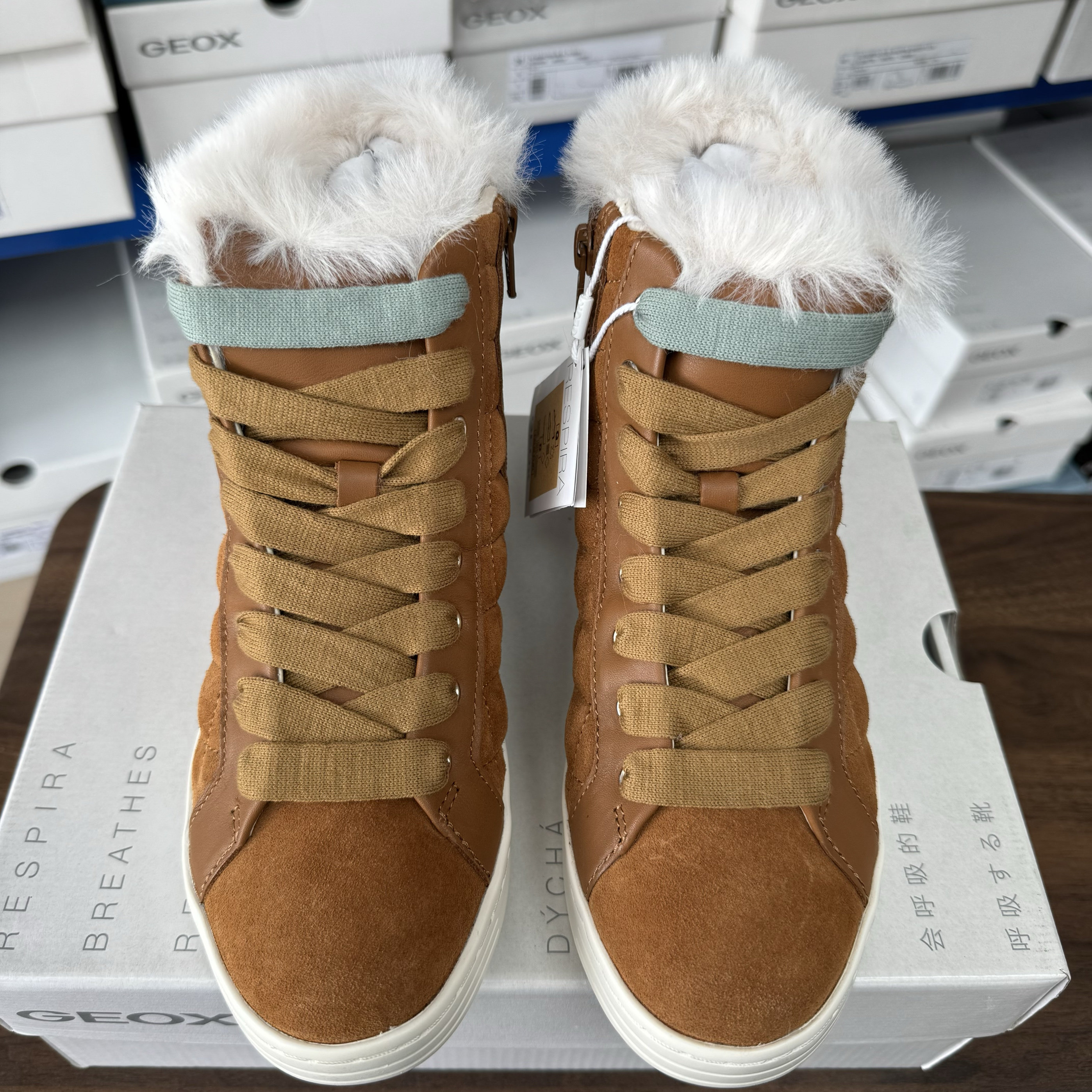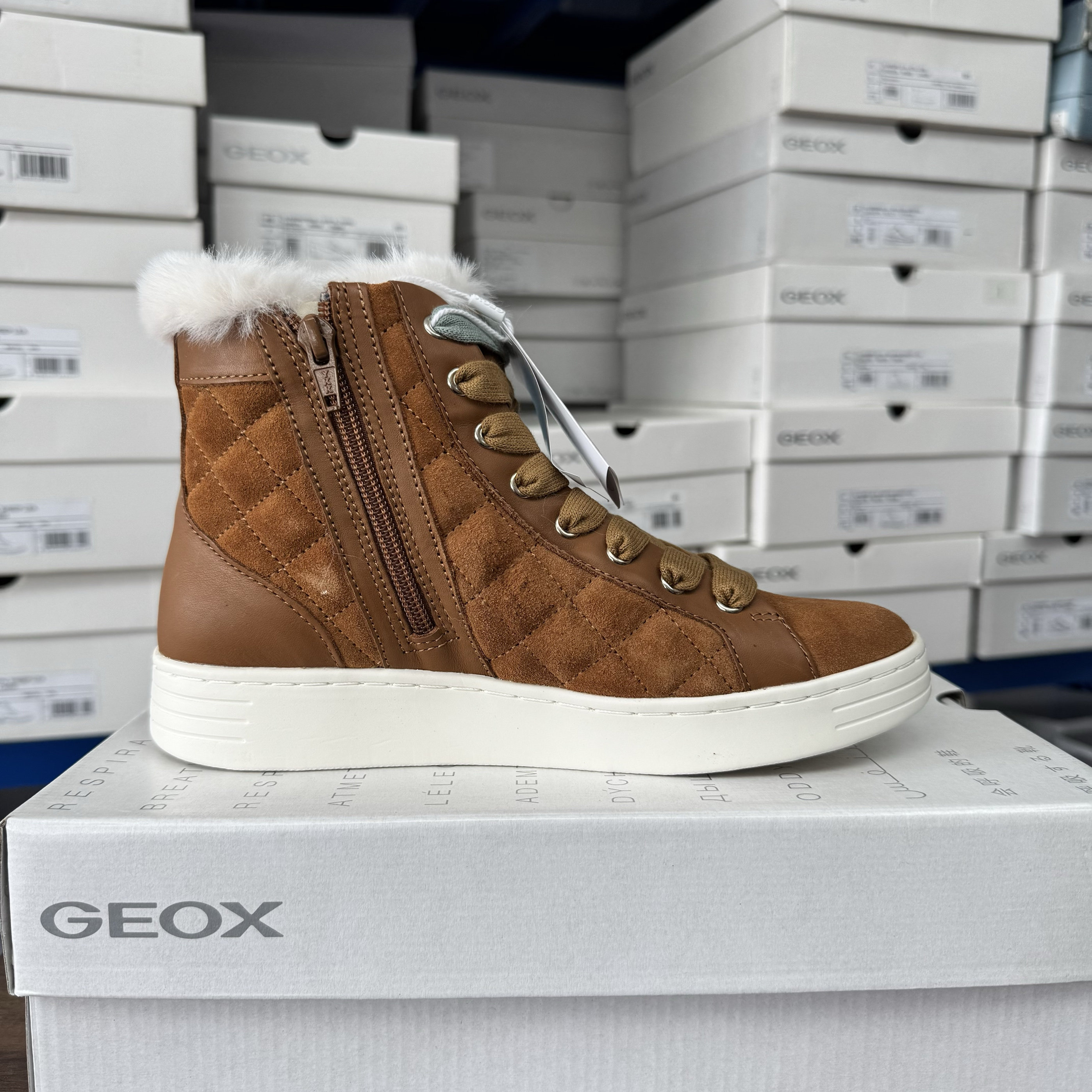 36码 C6001 GEOX女士翻毛皮高帮加绒靴D3624A