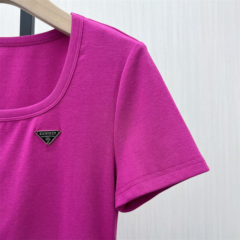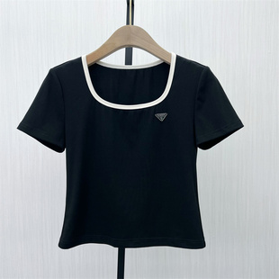 纯色圆领打底衫 新品 女修身 内搭短袖 上衣2002 迪 T恤衫 2025夏季