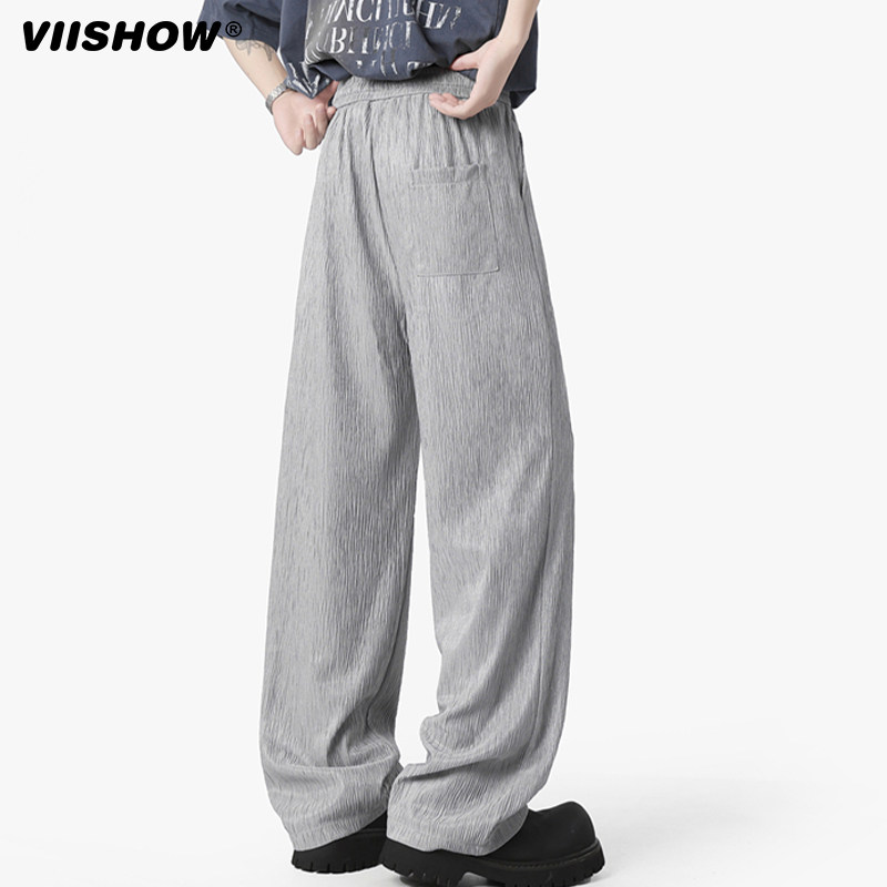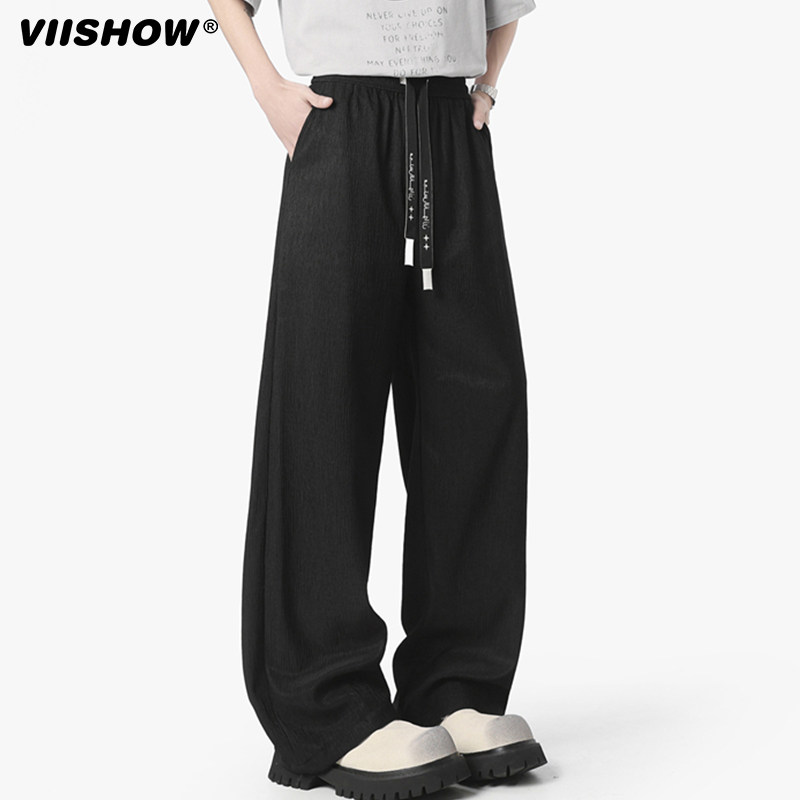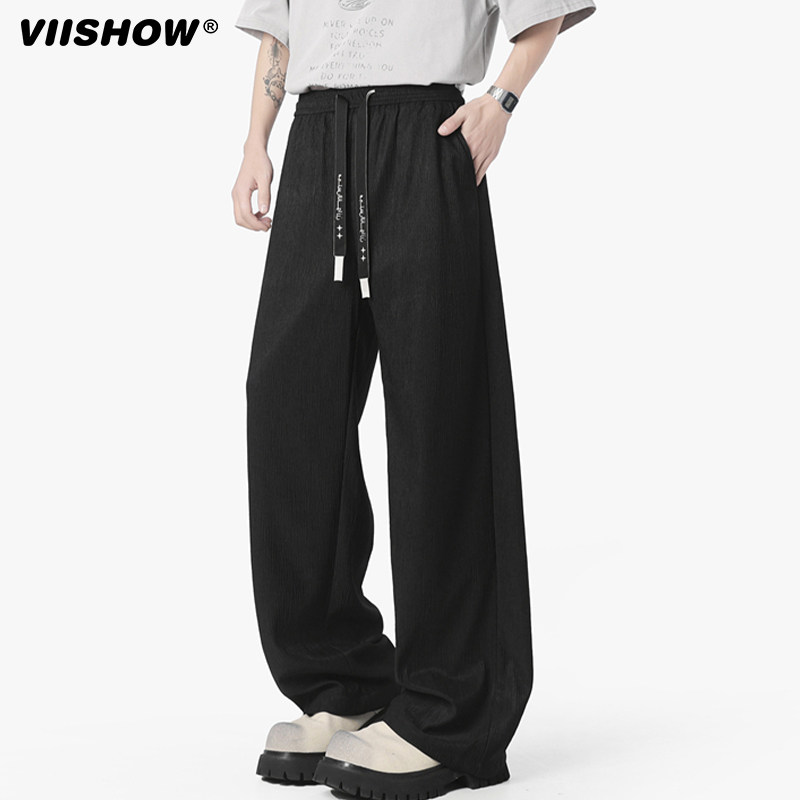 男女宽松百搭抽绳直筒裤 多巴胺垂感冰丝休闲裤 子 薄款 VIISHOW夏季