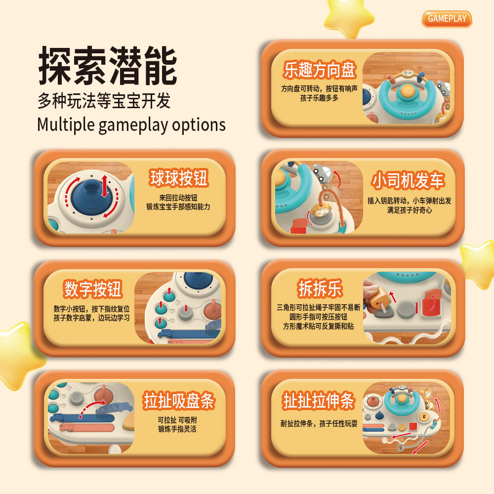 婴儿忙碌方向盘早教多功能玩具益智手指精细过家家早教按压开锁