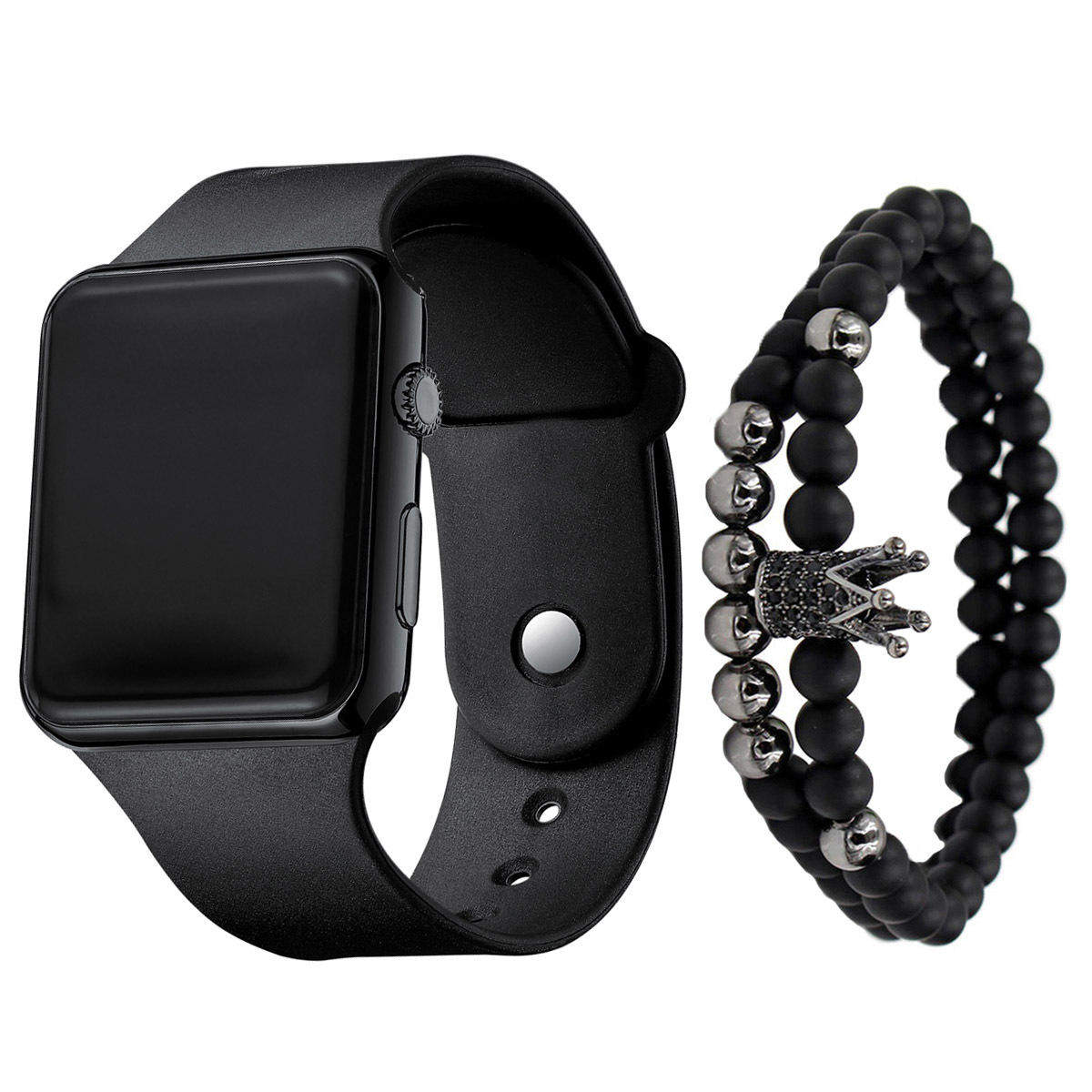 手链套装 3pcs 简约LED硅胶电子手表 时尚 set男士