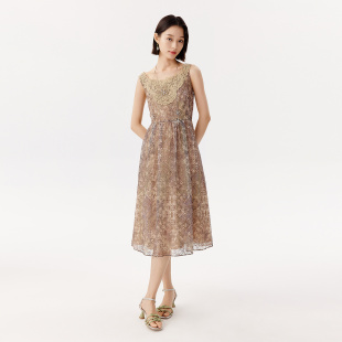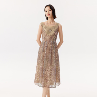 水溶蕾丝刺绣宴会精致吊带连衣长裙女 新款 VGRASS维格娜丝女装 夏季