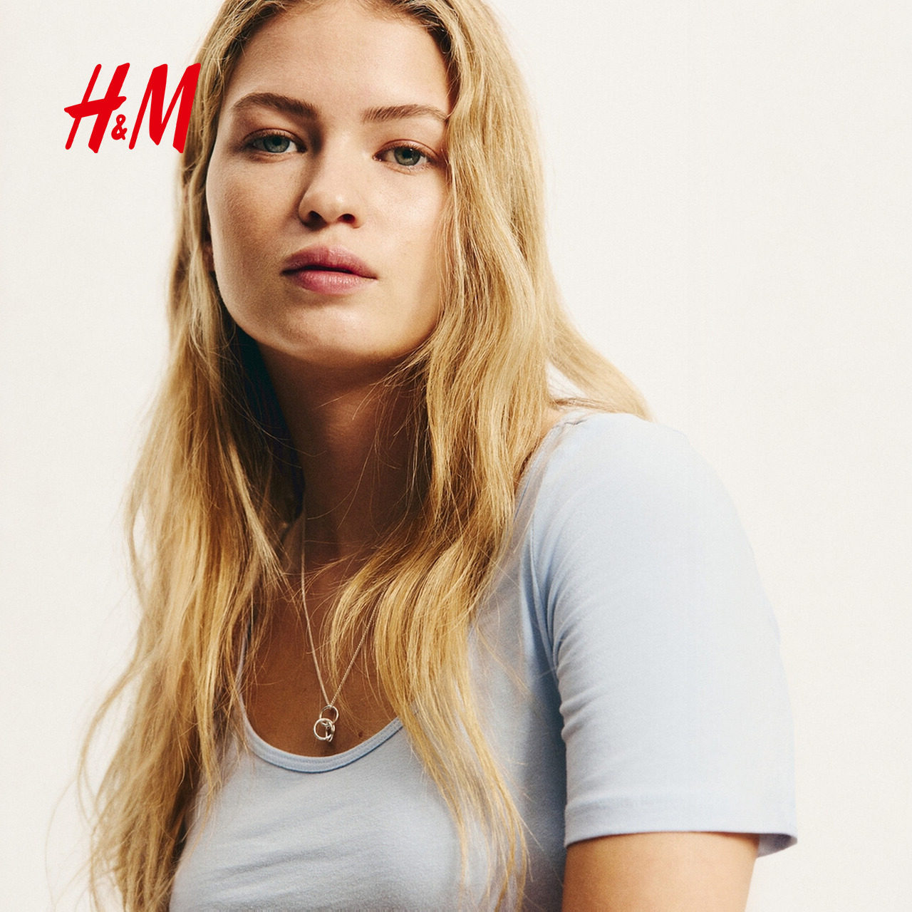 时尚 新款 低圆领短T恤1267017 T恤2025年冬季 HM女装