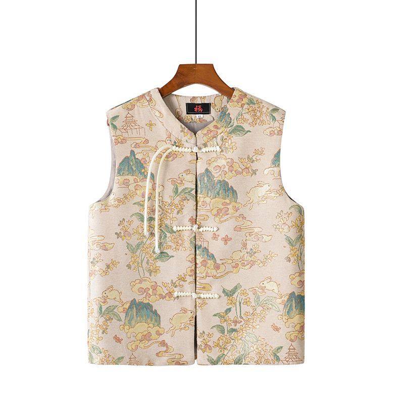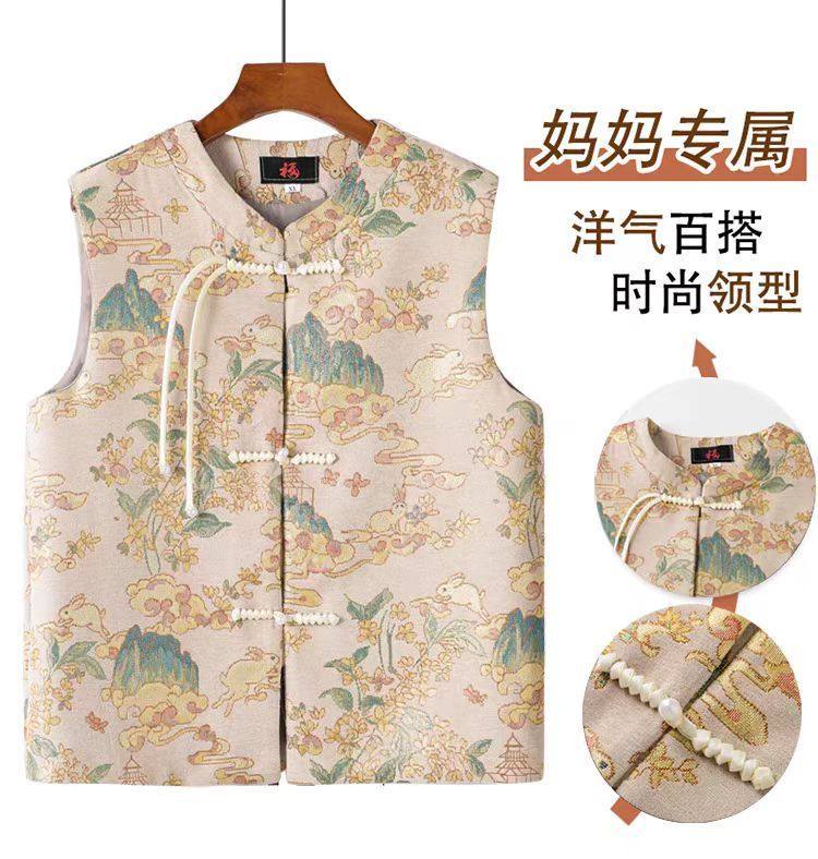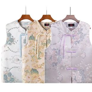 马夹上衣 圆领无袖 新中式 国风马甲复古日常提花刺绣坎肩背心女春季