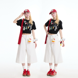 美式 新款 减龄宽松百搭上衣 T恤女夏季 NERESUM创意链条可爱玩偶短袖