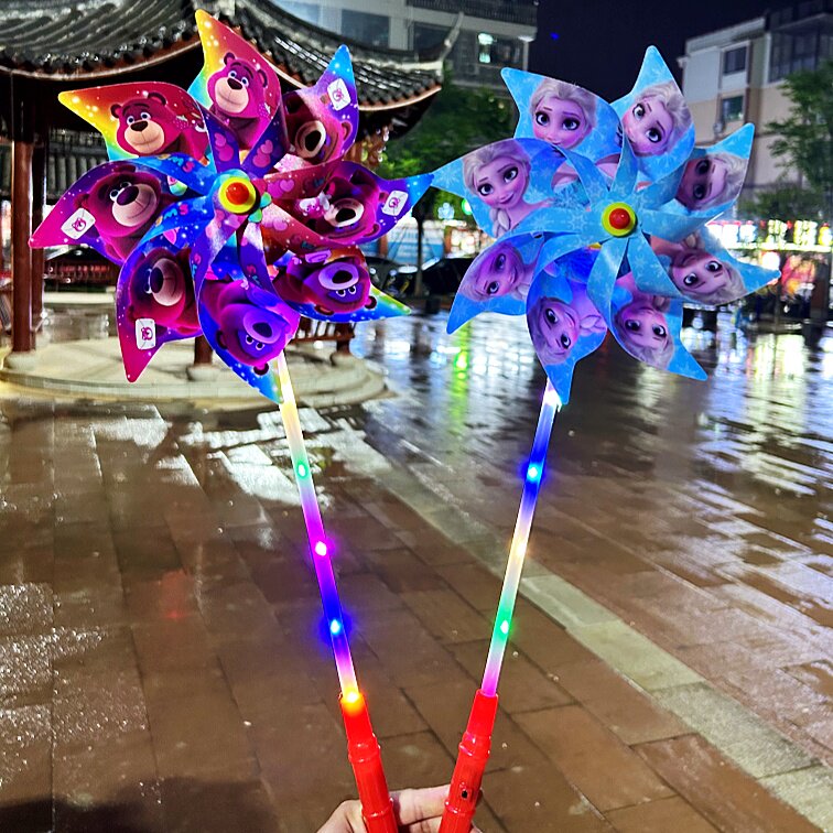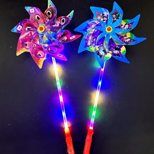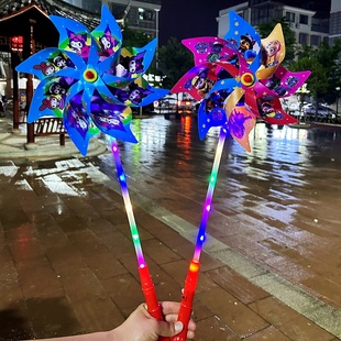 七彩卡通发光六轮风车儿童户外亲子玩具节日礼品地网红摆摊小商品