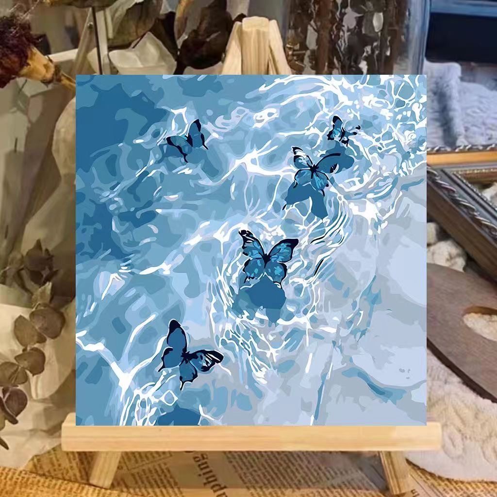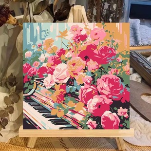 玫瑰海边diy数字油画手工填色油彩画治愈简单花卉客厅装 饰画礼物