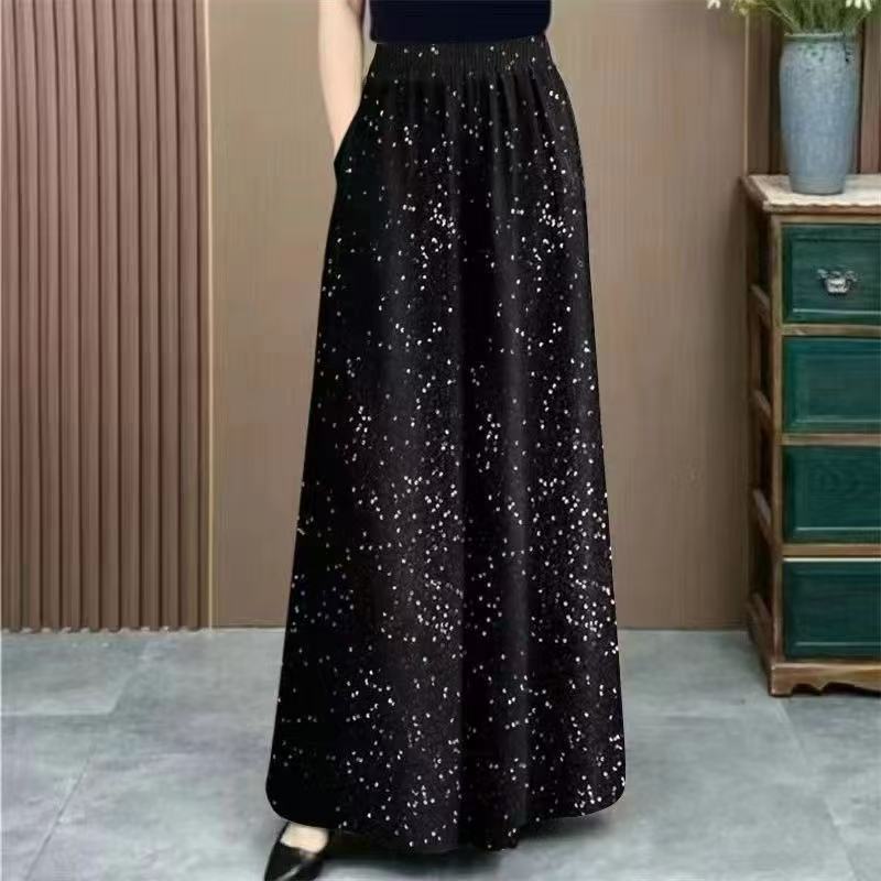 印花高腰显瘦休闲气质碎花长裙裤 中老年妈妈裤 时尚 新款 裙冰丝夏季