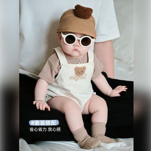 两件套夏装 薄款 宝宝衣服夏天婴童连体背带裤 夏季 婴幼儿洋气小套装