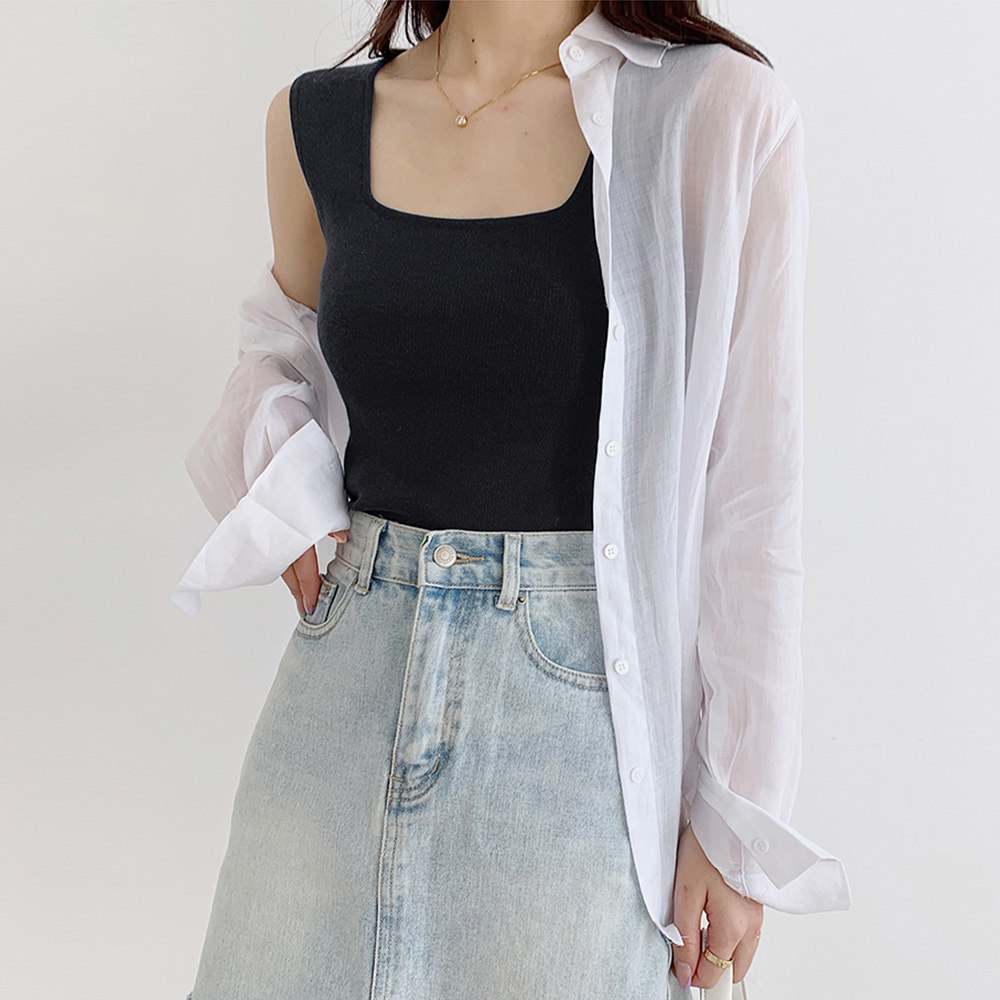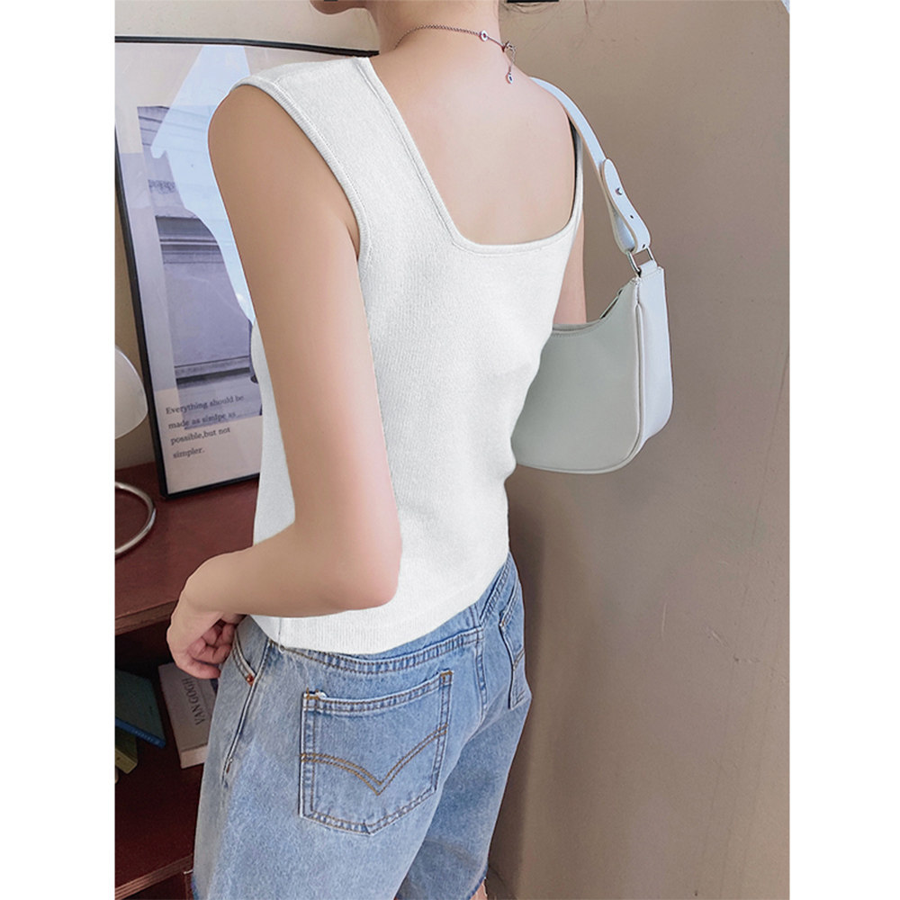 百搭纯色短款 方领修身 上衣吊带女背心打底0121 直播同款