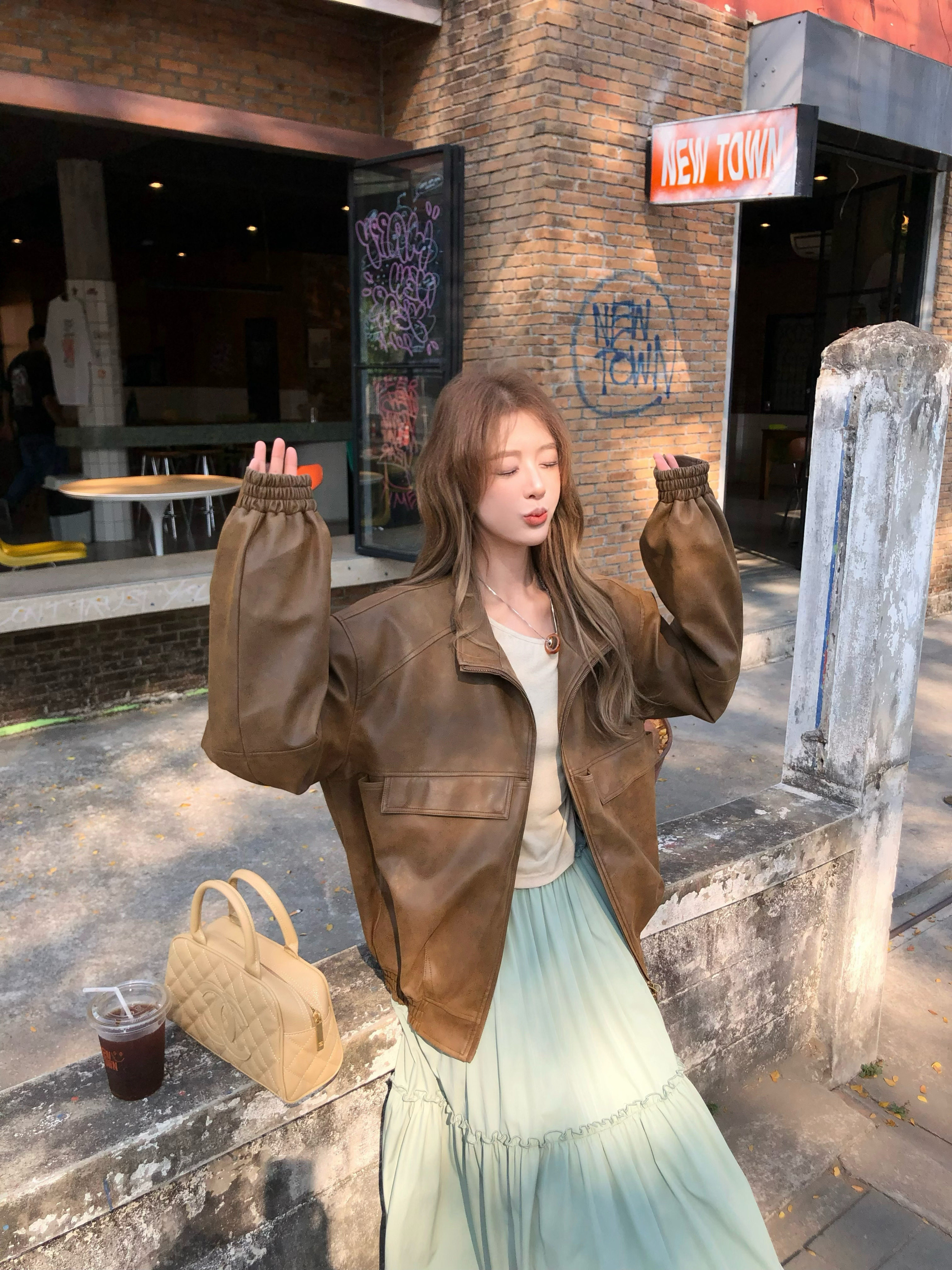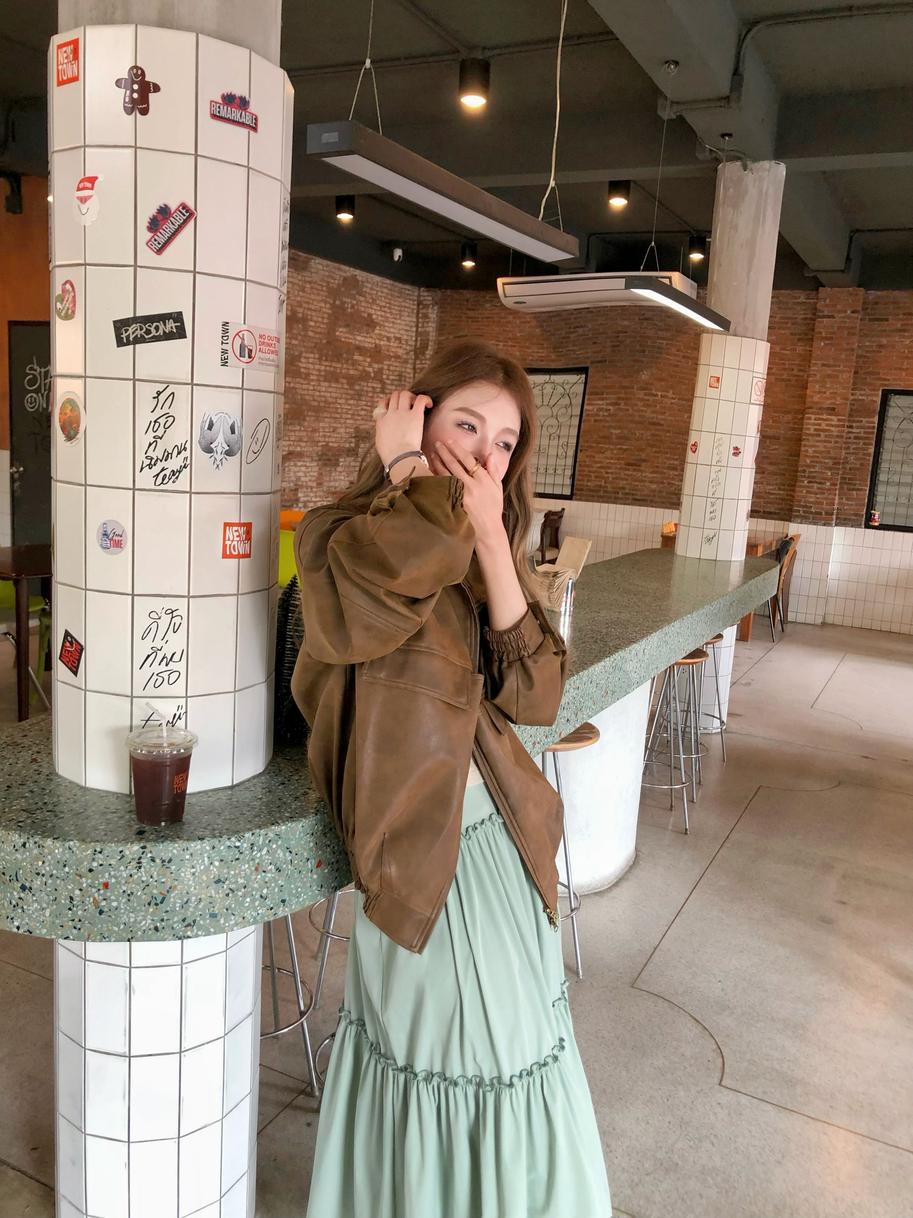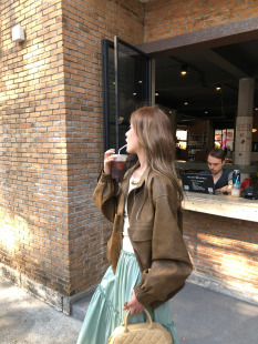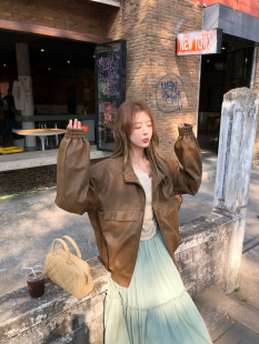 美式 松未独家 复古哑光皮衣短外套女上衣 松未韵一 soolrok