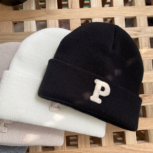 显白冰川蓝 保暖加厚坑条针织帽子女 韩国纯色兔毛毛线帽百搭冬季