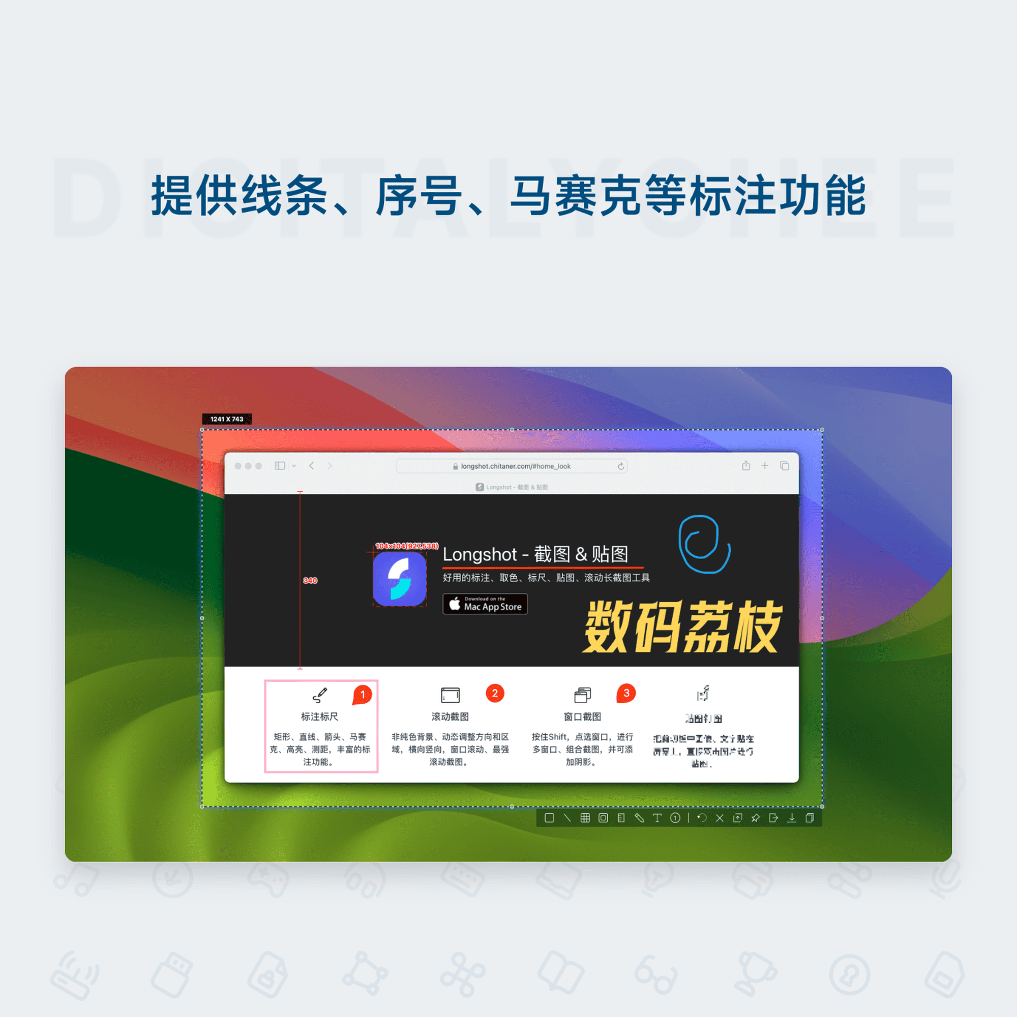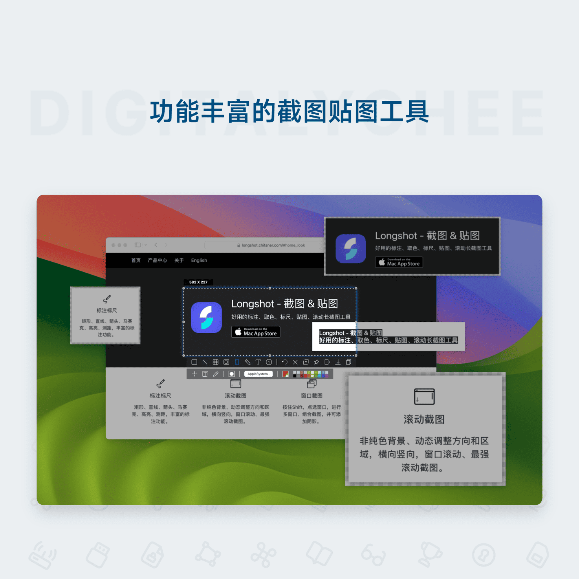 智能滚动截图贴图工具 数码 Mac Longshot 标注标尺取色置顶 荔枝