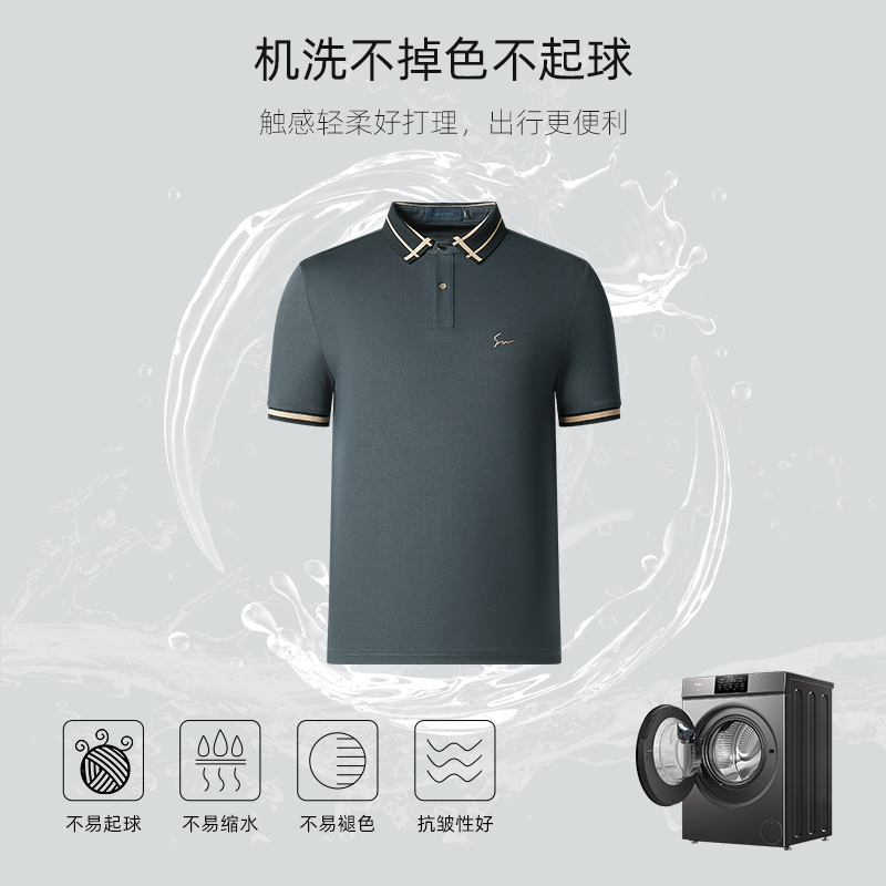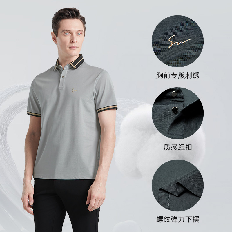 短袖 Polo衫 2025夏季 薄款 杉杉男士 新款 休闲撞色T恤男款 桑蚕丝
