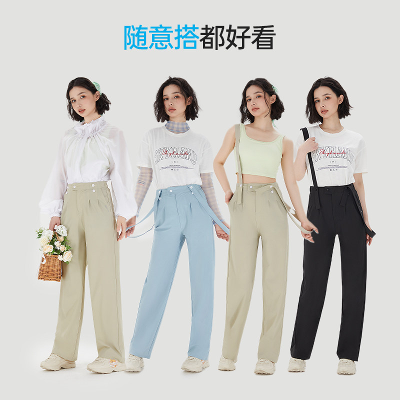 背带裤 直筒宽松跑步休闲工装 女速干防晒百搭阔腿裤 SKYHAND运动裤
