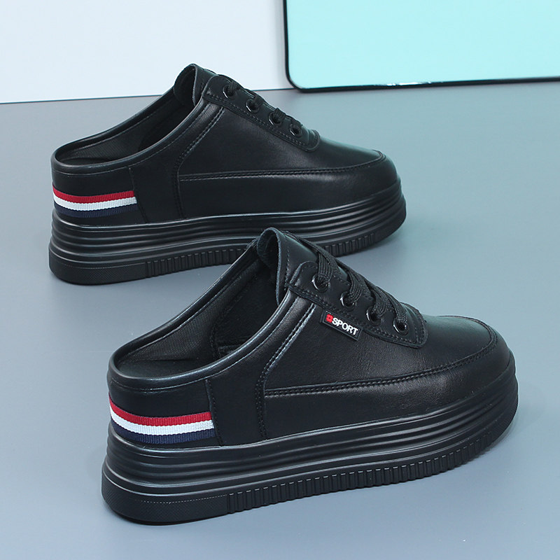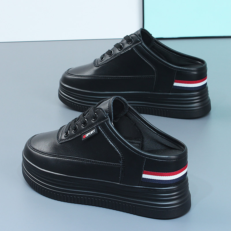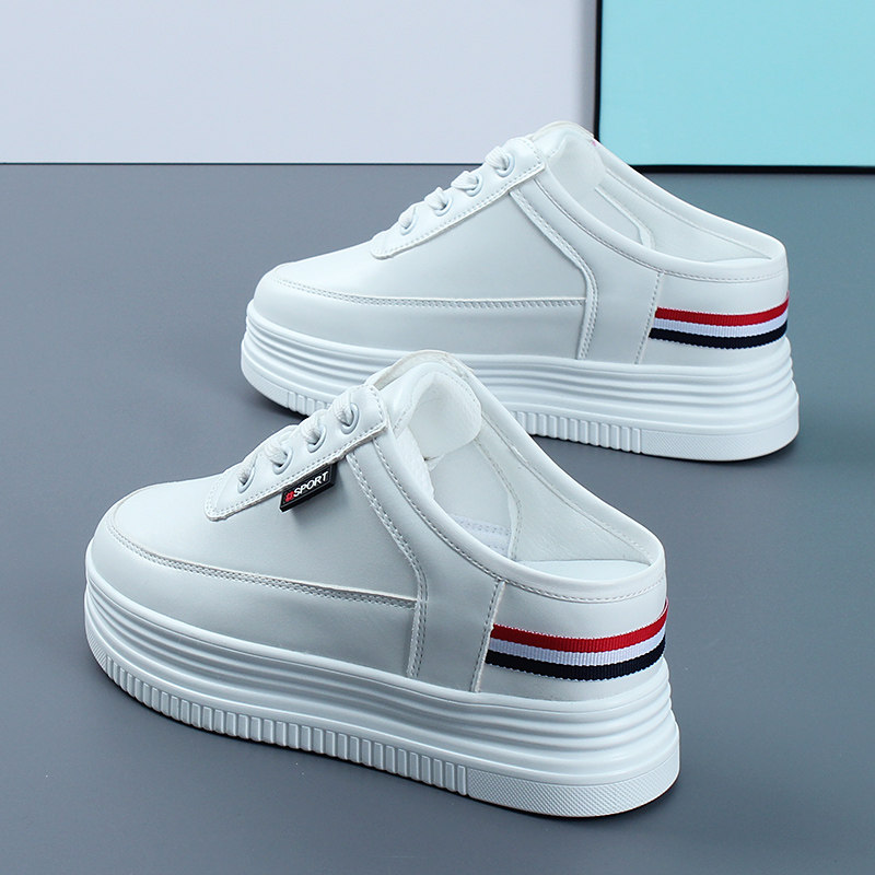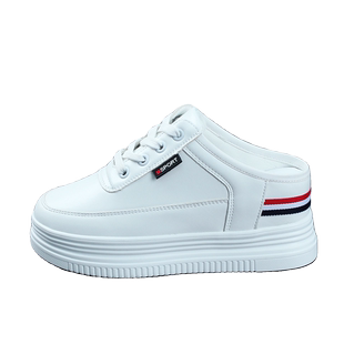 内增高7cm一脚蹬懒人半拖鞋 2025春秋透气新款 包头女鞋 松糕小白鞋