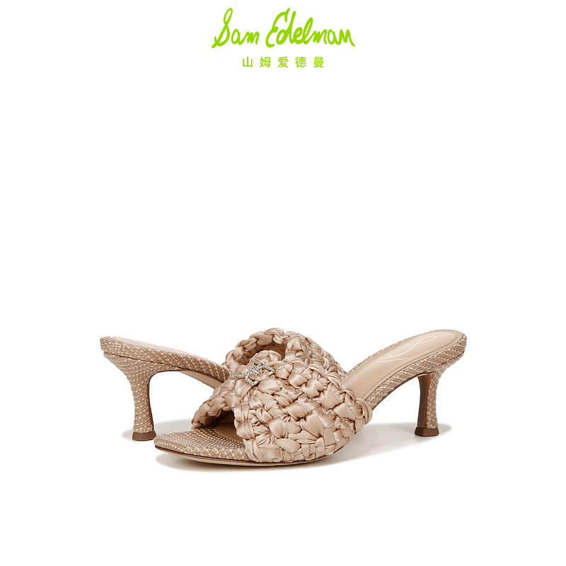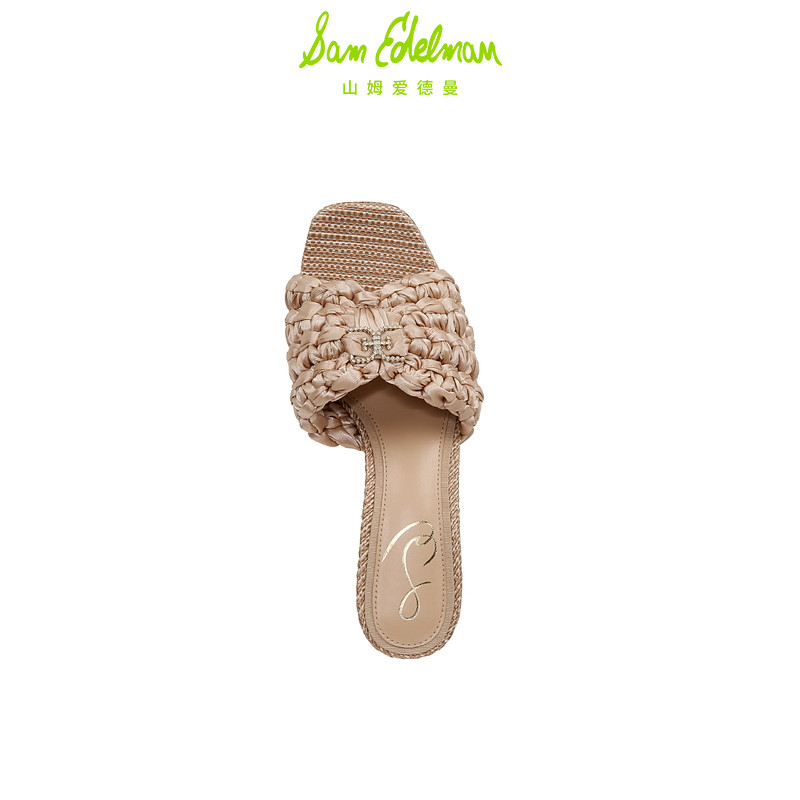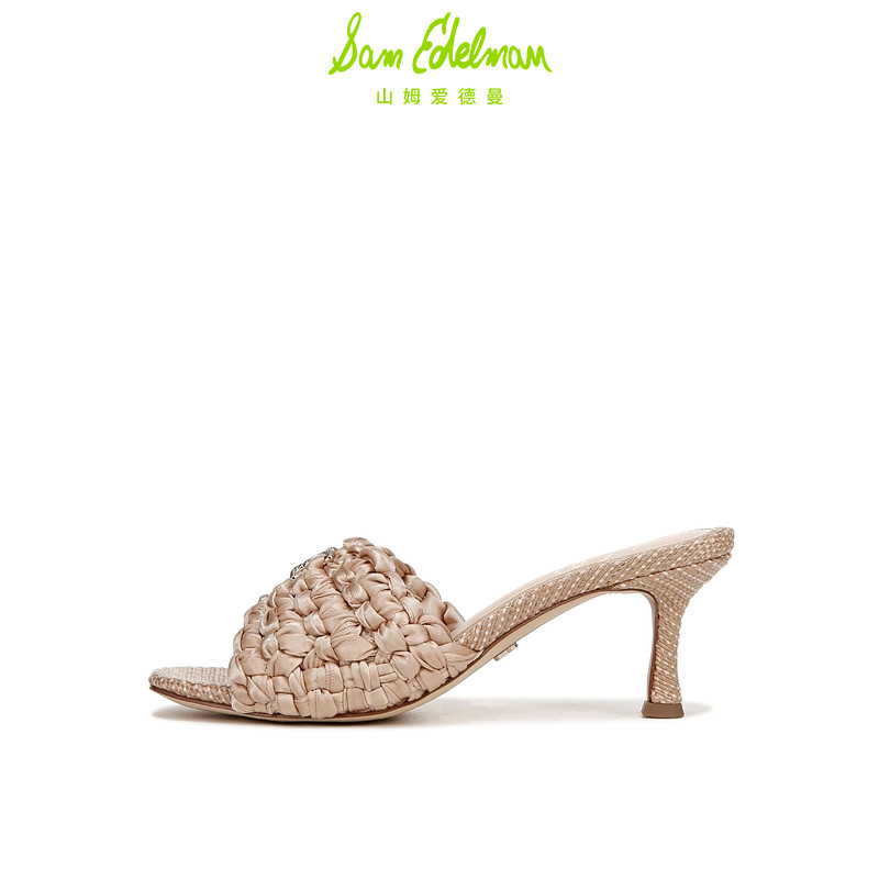 SAM 女PAISLEY EDELMAN山姆爱德曼夏方头高跟米色编织酒杯跟凉鞋