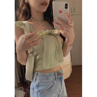 上衣女夏外穿甜辣奶fufu小吊带背心 露脐小飞袖 法式 荷叶边内搭短款