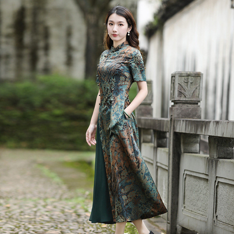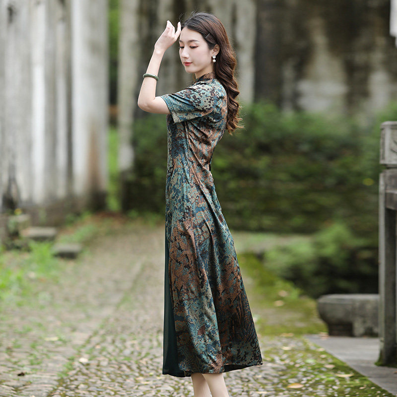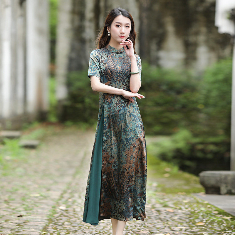 女装 改良旗袍时尚 中国风夏季 正宗越南旗袍裙子长款 复古连衣裙 新款