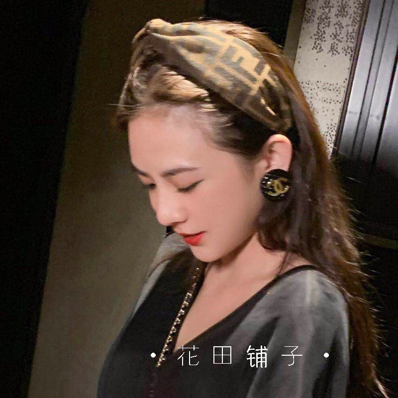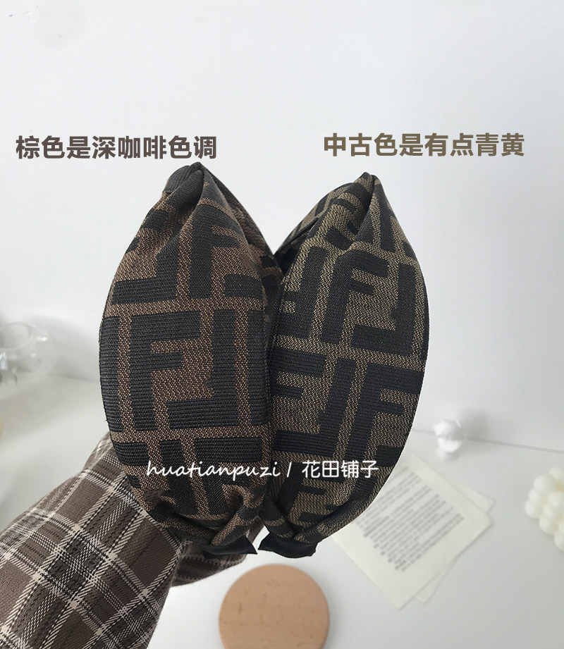 高端字母FF高颅顶宽边复古交叉发箍中古vintage法式 老花发卡头箍
