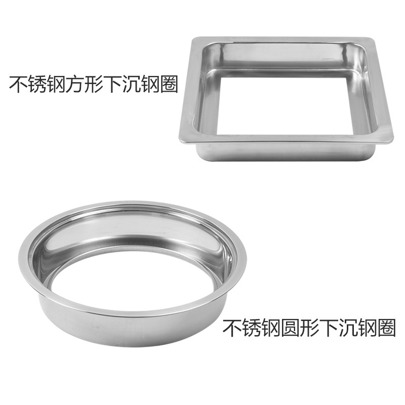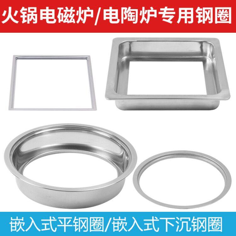 火锅电磁炉嵌入式 平嵌下沉钢圈方形圆形火锅店专用火锅桌不锈钢盖